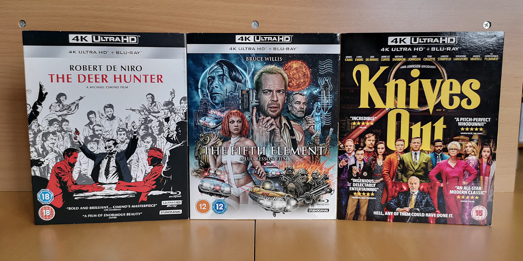 When I visited York after watching Avatar: The Way of Water in IMAX 3D HFR, I went to HMV and bought some more 4K Ultra HD releases. Two were included in their 2 for £30 deal and another was on a special offer. The titles I picked up were the Studio Canal releases of Michael Cimino’s 1978 The Deer Hunter and Luc Besson’s 1997 The Fifth Element as well as Rian Johnson’s 2019 Knives Out.