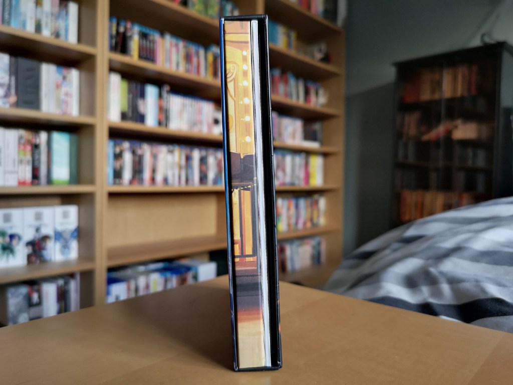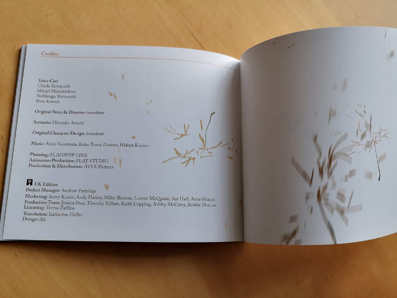 The collector’s edition package contains a rigid box housing a digipack that includes the Blu-ray and DVD discs, and alongside that are a 32-page booklet, one A3-sized fold-out poster, and four art cards. The booklet includes character designs, and interviews from various staff members including the director about the film.