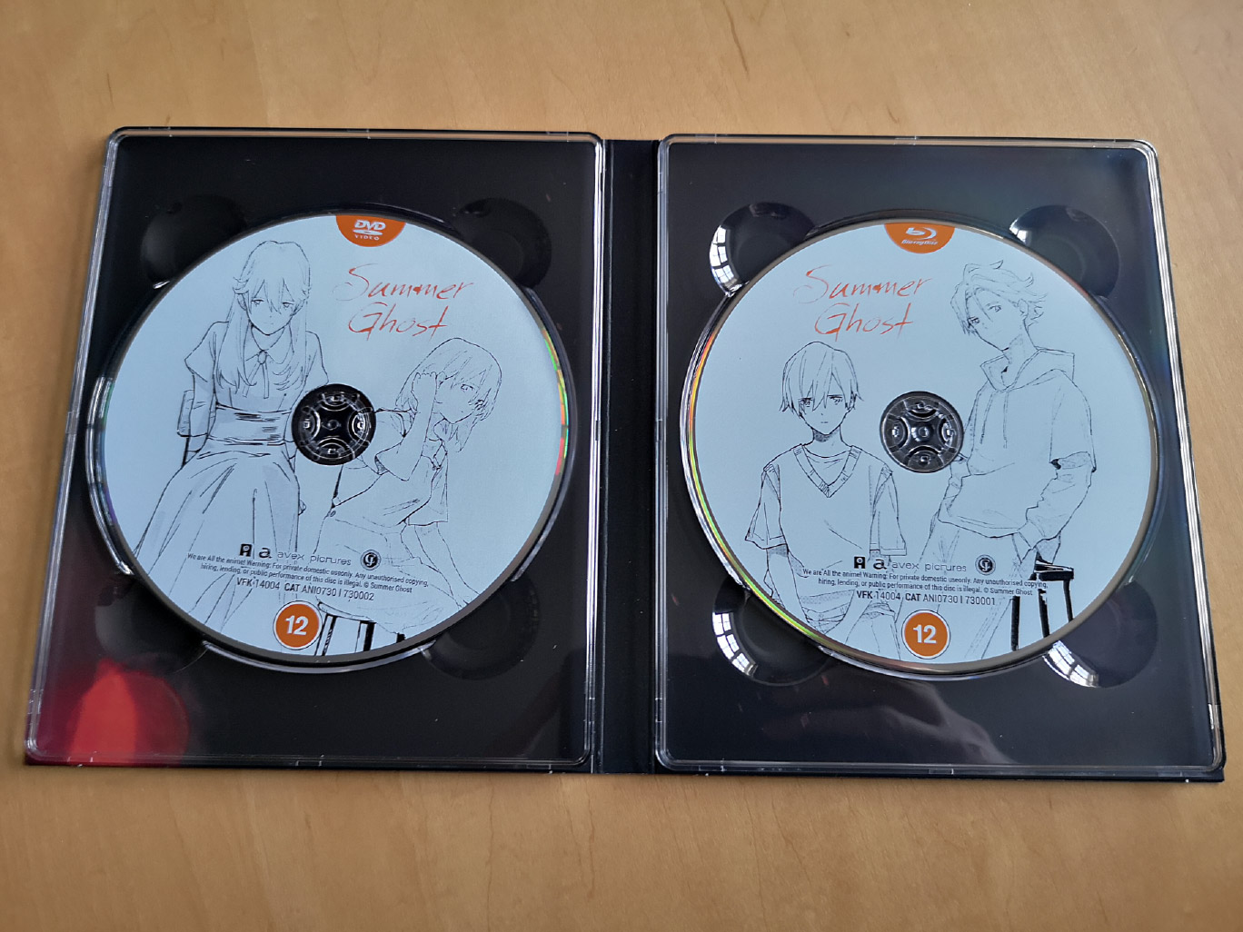 The collector’s edition release for Summer Ghost contains the film on a single Blu-ray disc and DVD disc. The Blu-ray was encoded and authored by US distributor GKIDS, while the DVD encoded and authored by Anime Limited’s French branch @Anime as the former only released the film on one format.