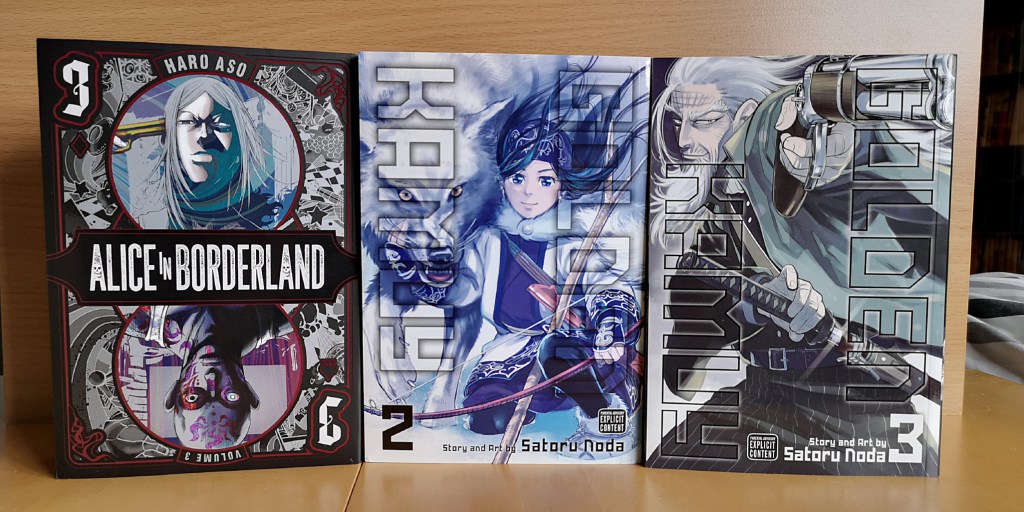 For once, all of the titles are more volumes for existing series that I started collecting. Starting off with Alice in Borderland Omnibus 3 (covers Vol. 5-6), which I had tried to acquire much earlier on in-store but they didn’t have the stock for it. Next we have Golden Kamuy Volumes 2-3, which was available online but I figured I’ll get them in-person whilst they were available.