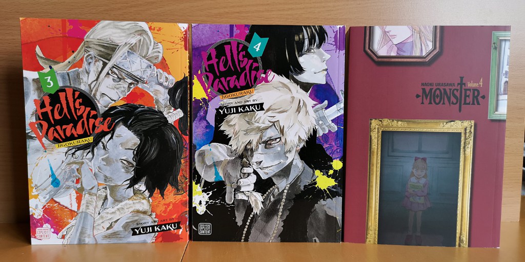 Then we have Hell’s Paradise Volumes 3-4, and this one has had stock issues of sorts for its earlier volumes so seeing them in the store was handy though I was worried the spine wasn’t aligned properly for the ones that I have but it seems to be fine. I do want to get the series sorted before the anime airs though. And last but not least we have Monster Omnibus 4 (covers Vol. 7-8), which still has stock issues for the rest of the series but it’ll come back as it’s a popular manga for Viz.
