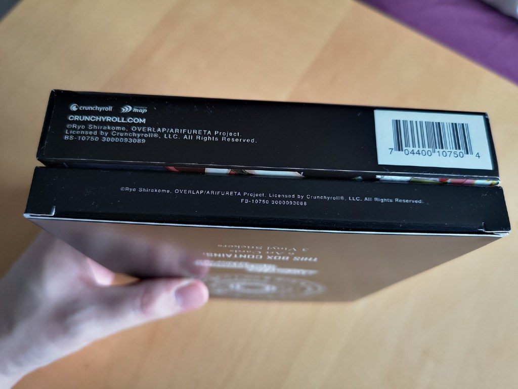 The rigid box artwork is free of any information and the info sheet covers the information and specification like previous Crunchyroll limited edition releases.
