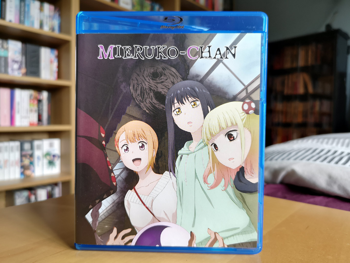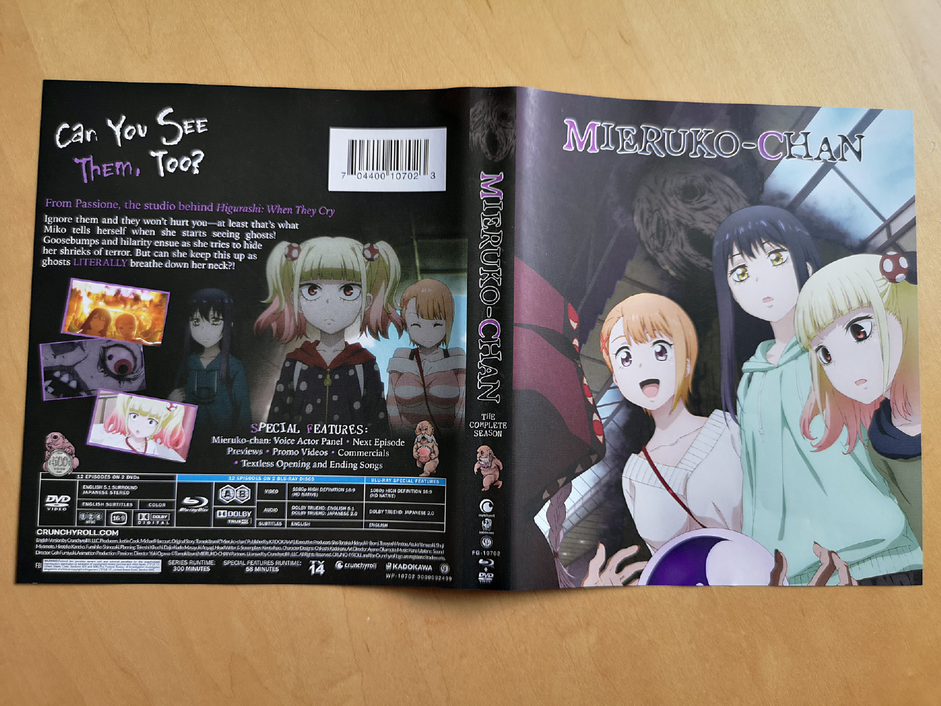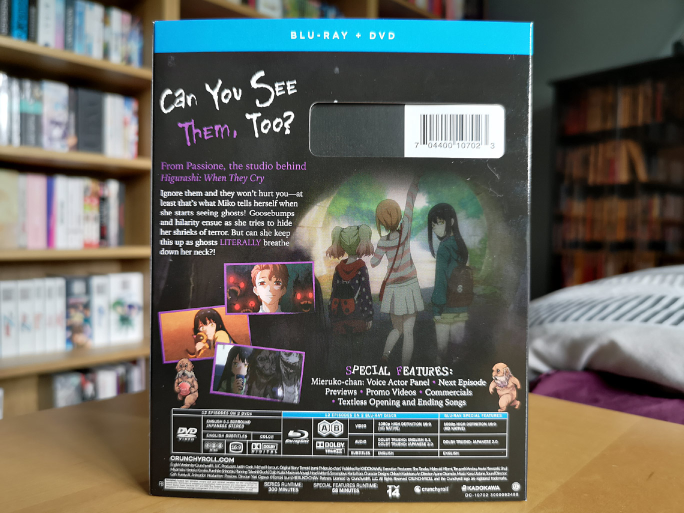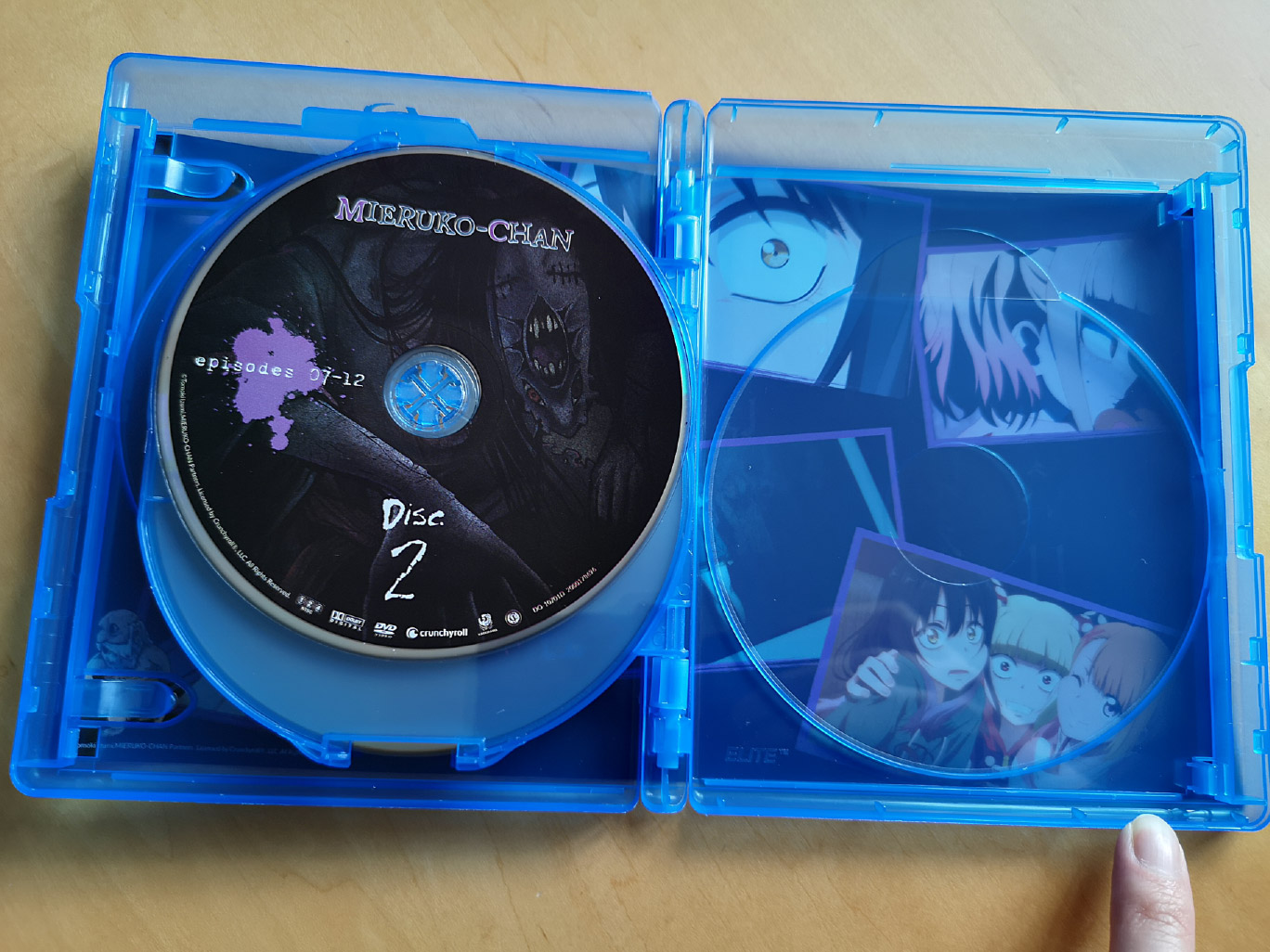 The limited edition release for Mieruko-chan contains all 12 episodes across two Blu-ray discs and two DVD discs, with the encode and authoring done by Crunchyroll.