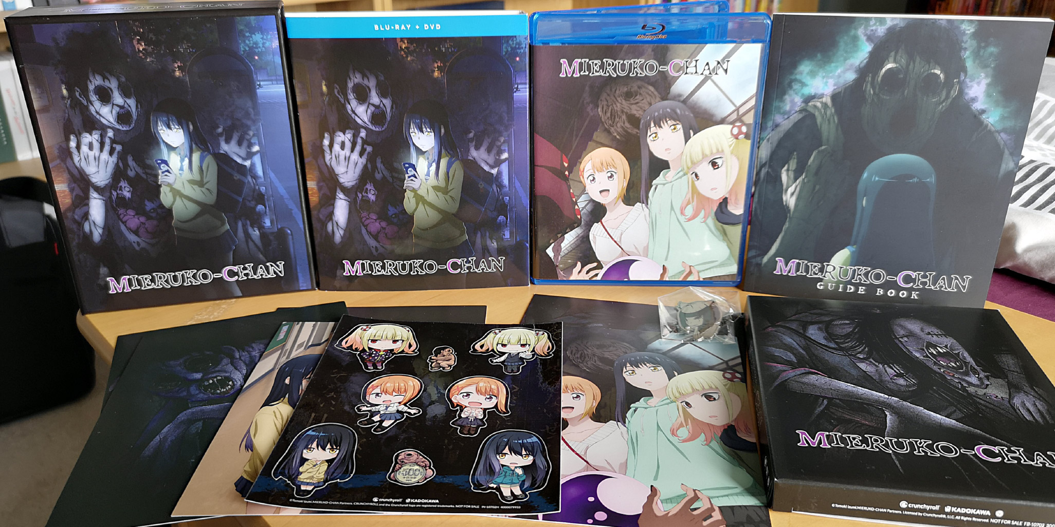 Mieruko-chan receives a rather nicely packaged limited edition, making full use of the creepy horror artwork the series has for its set.