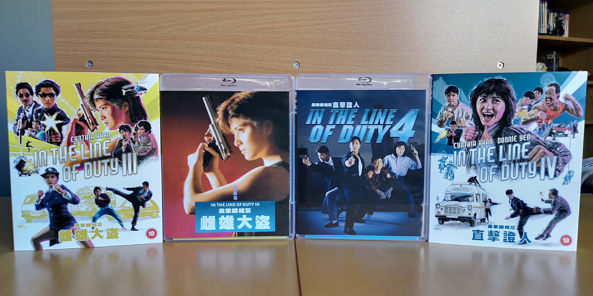 Ordered these pretty late but I finally picked up In the Line of Duty III (皇家師姐III雌雄大盜) and In the Line of Duty IV (皇家師姐IV直擊證人) from retailer Terracotta. These are the Eureka Entertainment versions so they’ll match the first two films Yes Madam and Royal Warriors.