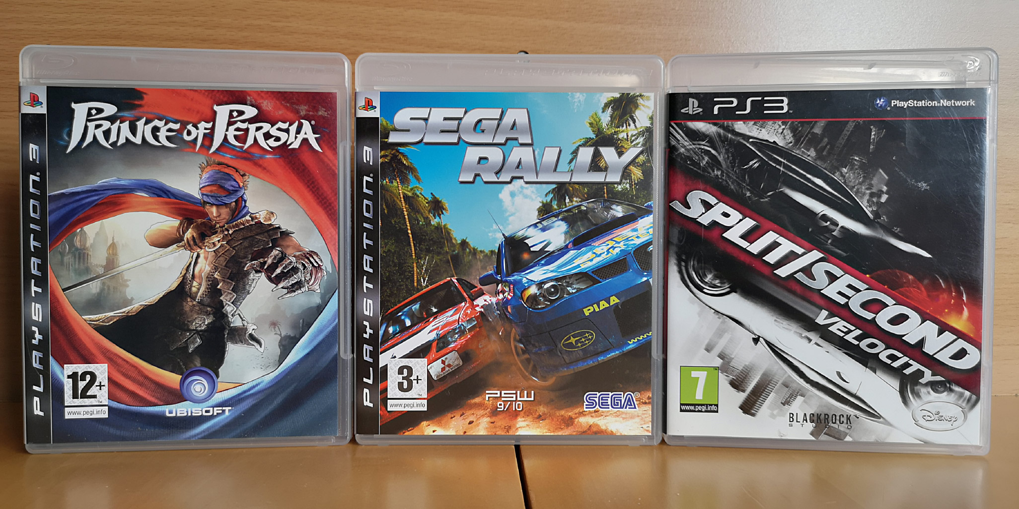 They had a good variety of titles, but none of the super rare ones unless you needed something like God of War HD Collection or Deadly Premonition. The ones I picked were Prince of Persia, SEGA Rally and Split/Second: Velocity. They are all multi-platform titles that are still around for reasonably cheap prices, but I decided to get them for the PlayStation 3 collection. The latter I also bought mainly because it was included in MetalJesusRock’s hidden gems video for the PS3 catalog.