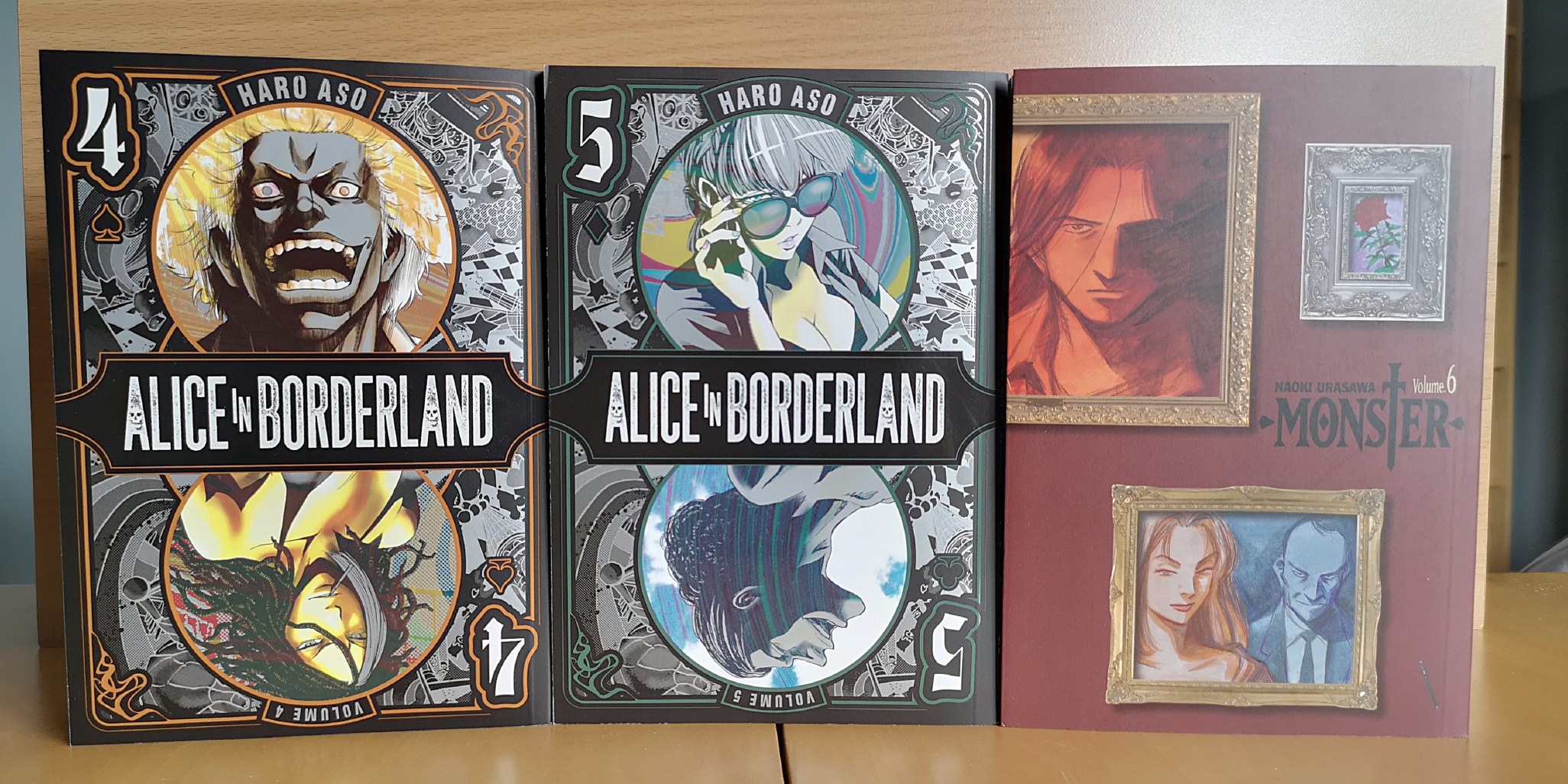 The first is Alice in Borderland omnibus 4 & 5 which is once again up-to-date, so there’s about four more left to go. Also picked up Monster omnibus 6. They did have omnibus 8 & 9 but not 7 so I’m getting those ones later.