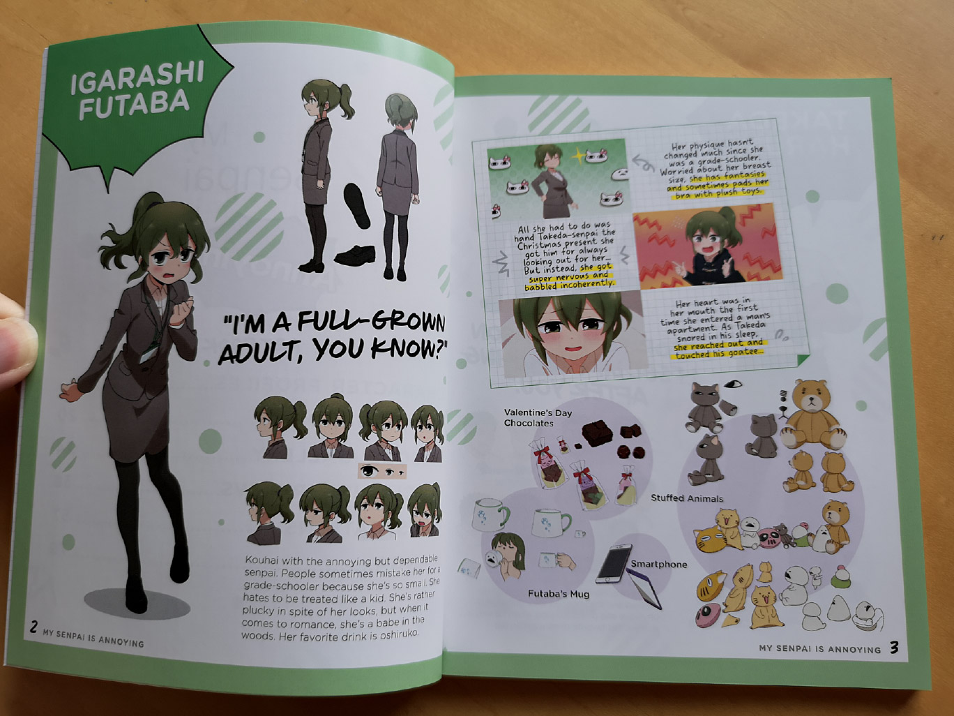 “Being seen as a full-fledged business woman isn’t easy for Igarashi Futaba when her loudmouthed senpai, Takeda Harumi, always treats her like a kid. Maybe she feels more than she lets on, but one thing’s for sure: She’s still annoyed!”