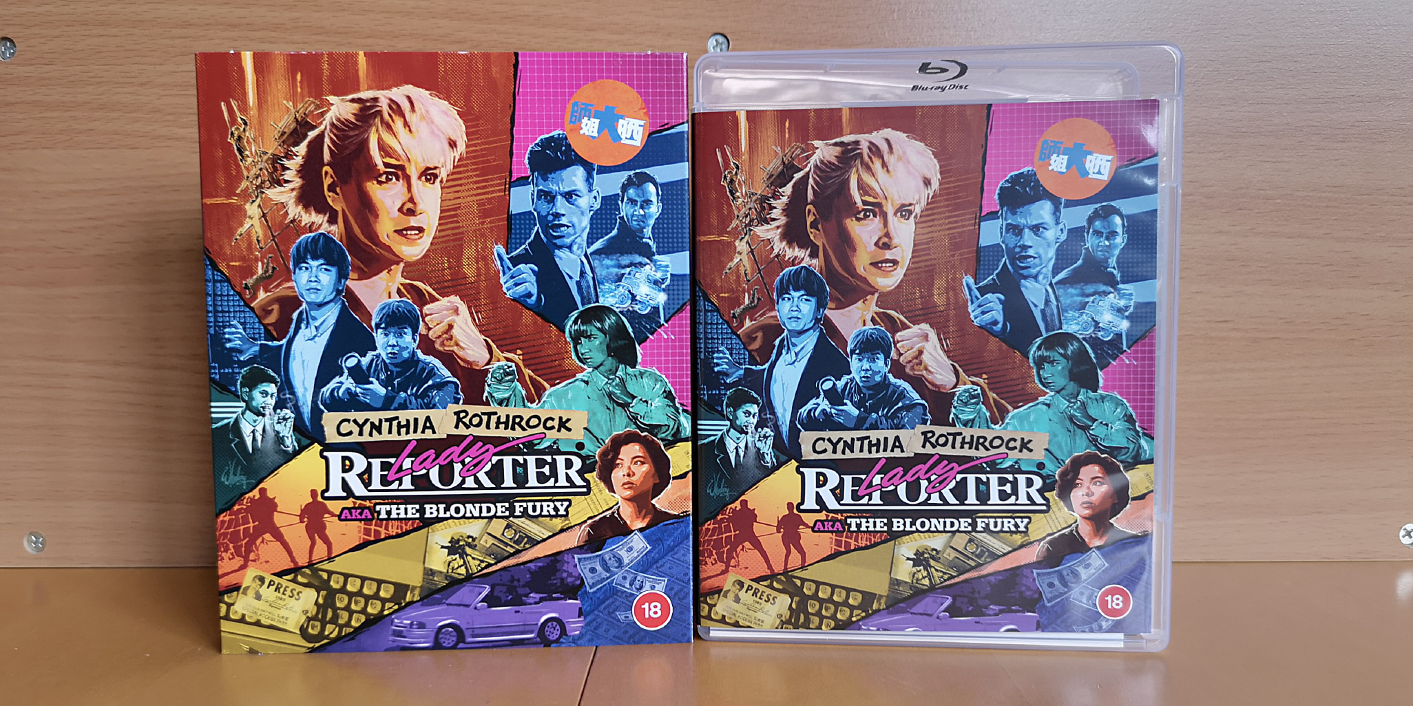 The third and last title from Eureka Entertainment’s June pre-order bundle arrived, which shipped later because the release date was a week after the other two. The film that arrived was Mang Hoi’s 1989 film Lady Reporter (師姐大晒), also known as The Blonde Fury, and it’s part of Eureka’s Classics range which is presented in a first print edition that comes with a slipcase, booklet and art cards.