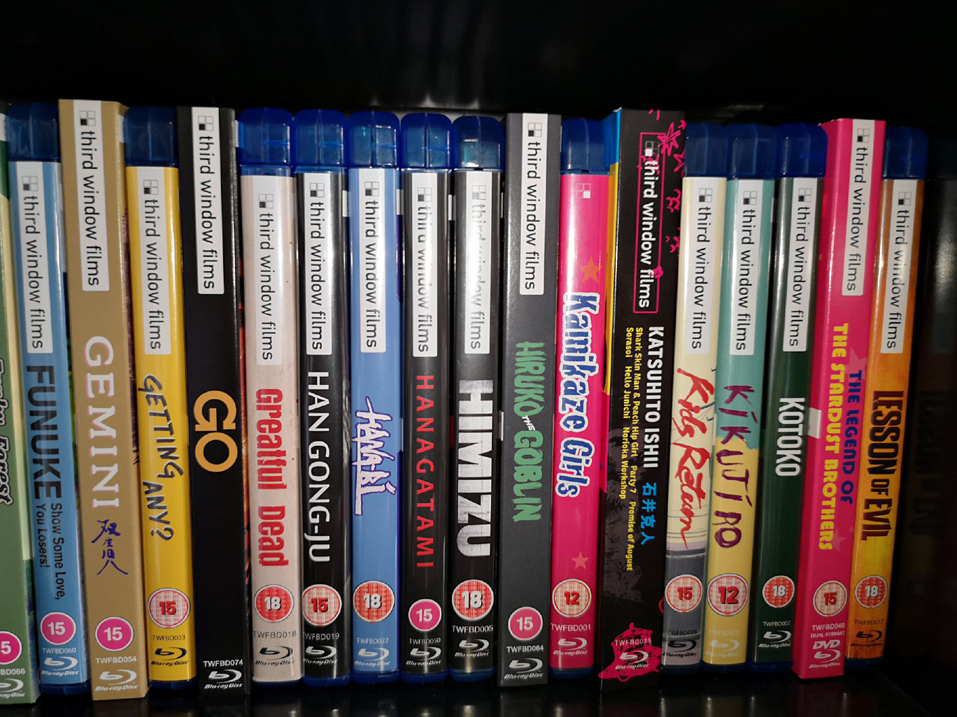 Third Window Films is an independent UK distributor for Asian Cinema, primarily releasing Japanese films. Their line-up features a variety of films of all genres from notable directors including Shinya Tsukamoto (Tetsuo: The Iron Man), Nobuhiko Obayashi (Hanagatami), Toshiaki Toyoda (9 Souls), Macoto Tezka (Legend of the Stardust Brothers), Sōgo Ishii (Crazy Thunder Road), Shin’ichirō Ueda (One Cut of the Dead) and Junta Yamaguchi (Beyond the Infinite Two Minutes). The distributor is smaller than 88 Films, Arrow and Eureka Entertainment, but continues to provide more variety of Japanese films, both newer and older, to newer audiences. As of the time of this post, their next batch of releases will include Banmei Takahashi’s Door & Door II, Kiyoshi Kurosawa’s The Guard from Underground, Reiki Tsuno’s Mad Cats and Shinji Sōmai’s Typhoon Club.
