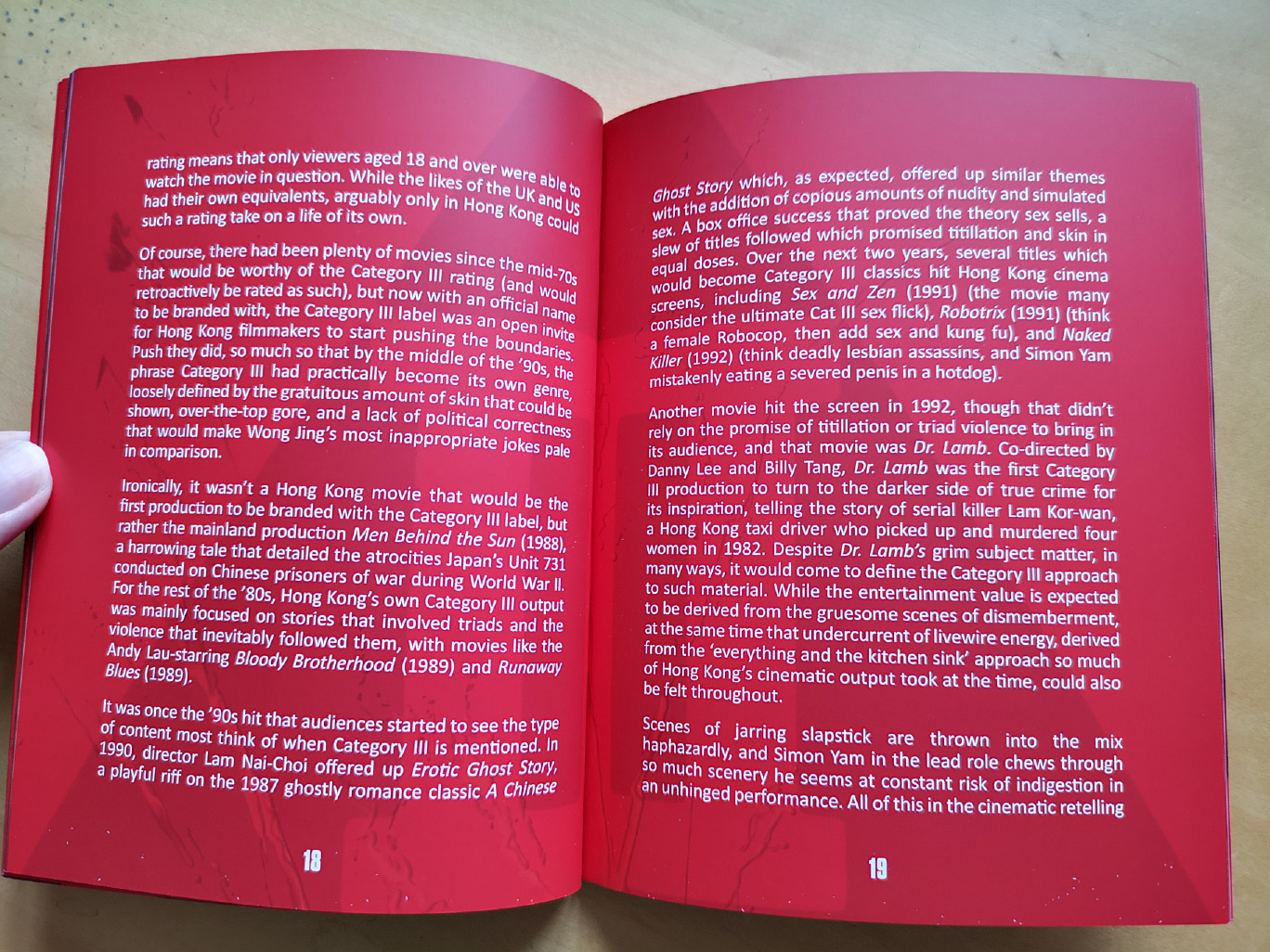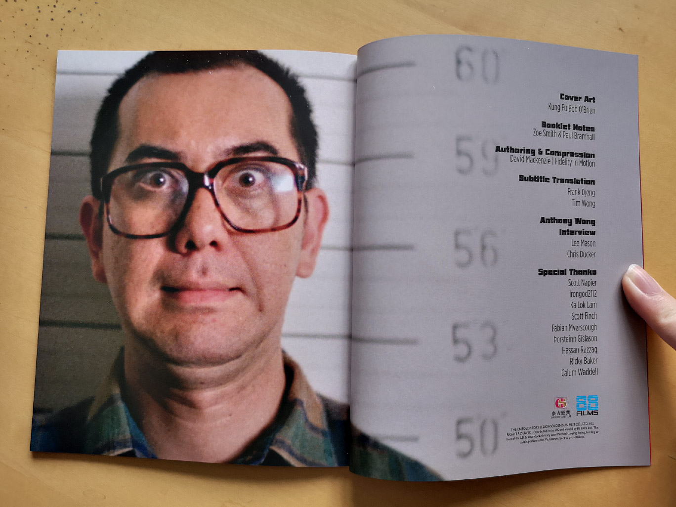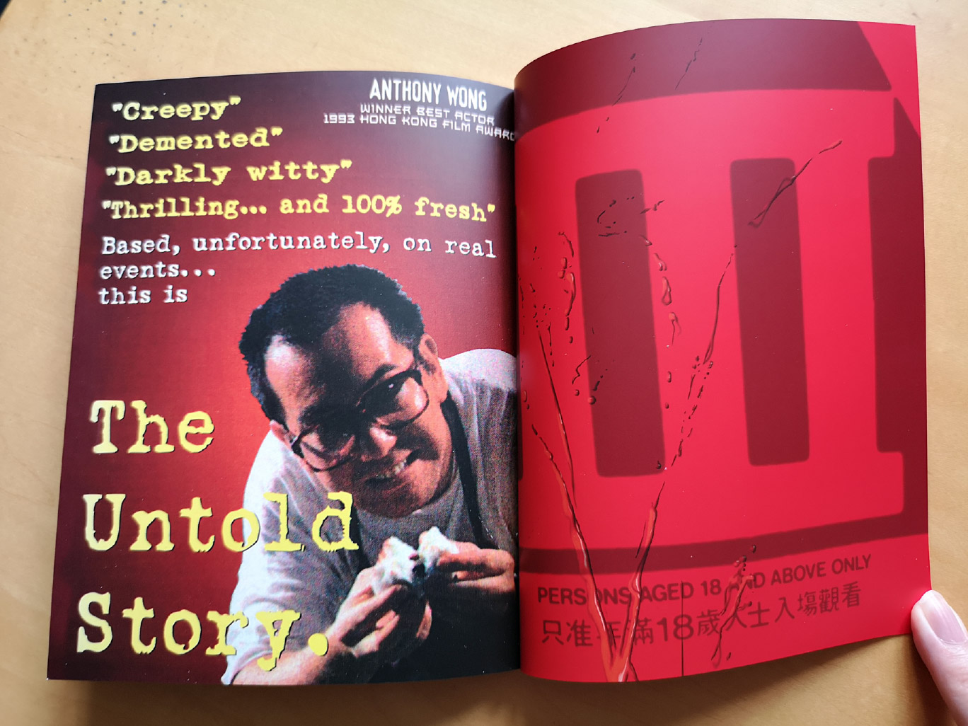 This deluxe collector’s edition release is presented with a rigid box showcasing newly illustrated artwork by R.P. “KUNG FU BOB” O’Brien, an Amaray case housing the disc, double-sided poster featuring the new artwork and the original theatrical poster artwork, and an 40-page perfect-bound book featuring two write-ups. The articles covered are ‘The Untold Story: Cannibalising and Exploiting Real Life Crime’ by Zoë Rose Smith, and ‘Untold Stories, Ebola Syndromes, and Sleep Curses: A Herman Yau & Anthony Wong Retrospective’ by Paul Bramhall. Also included in the booklet is a mini filmography of the duo’s collaborations in Hong Kong cinema.