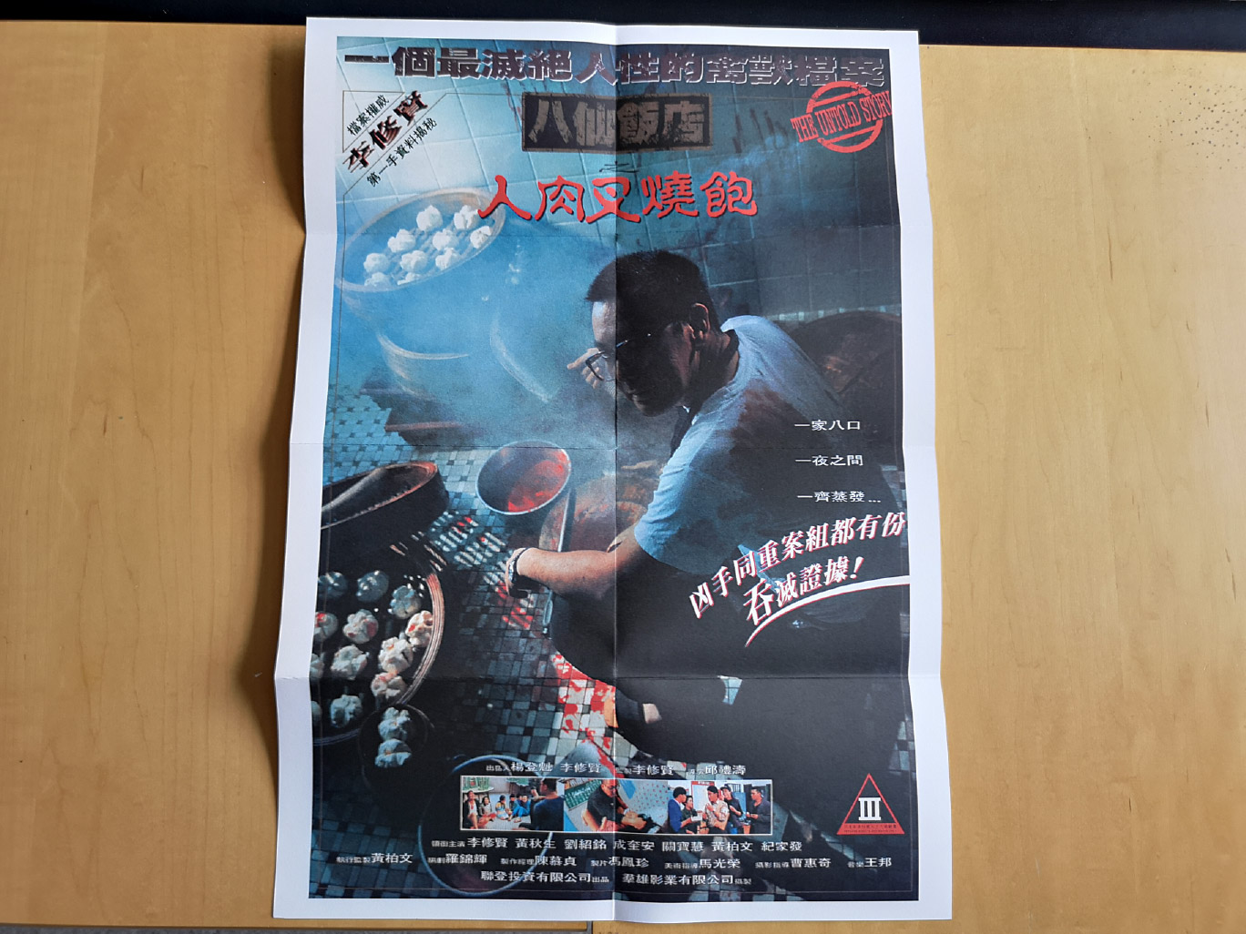 “In 1978 in Hong Kong, a grisly murder takes place. Eight years later on a Macao beach, kids discover the severed hands of a fresh victim. A squadron of coarse, happy-go-lucky cops investigate and suspicion falls on Wong Chi Hang, the new owner of The Eight Immortals Restaurant famous for its delicious pork buns. The hands belong to the missing mother of the restaurant’s former owner who has disappeared along with the rest of his family. Staff at the restaurant continue to go missing but the police can’t find any hard evidence that Wong is responsible. When he can’t produce a bill of sale proving his purchase of the restaurant, Wong is arrested and the police try to torture him into a confession. Can they make him talk? And what was in those famous pork buns?”