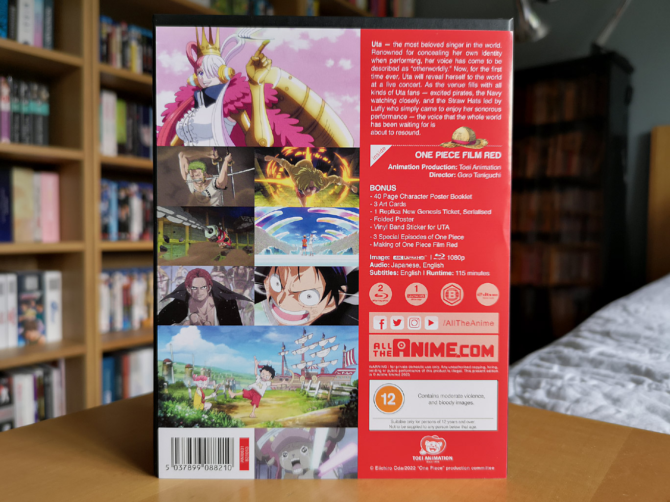 The collector’s edition release for One Piece Film: Red contains the film on a single 4K Ultra HD disc and two Blu-ray discs.