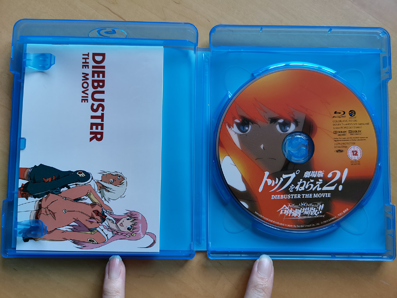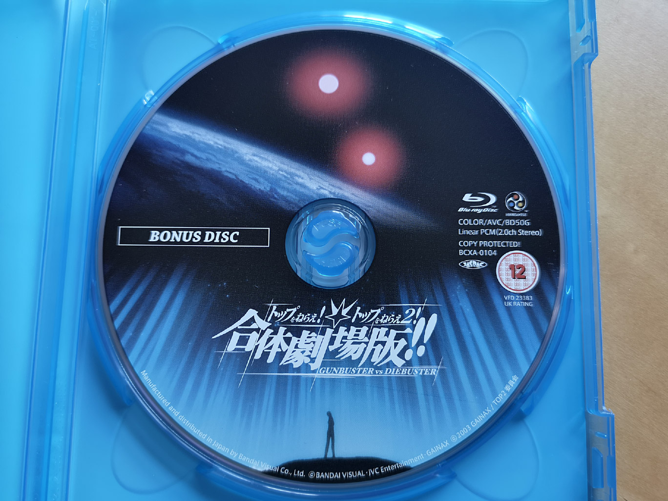 Gunbuster vs Diebuster: Aim for the Top! The GATTAI!! Movie was brought over to the United States by Bandai Visual and Honneamise in 2008 and released in a limited edition Blu-ray Disc Box replica of the Japanese release. The UK & France also had access to the films from Bandai Entertainment’s European branch Beez Entertainment, hence why the BBFC logos were on the discs. Eventually the licence did expire when Bandai Entertainment went under which brought Bandai Visual and Beez Entertainment with them. Gunbuster the Movie was eventually rescued by Sentai Filmworks & Maiden Japan whilst Diebuster the Movie is currently unlicensed.
