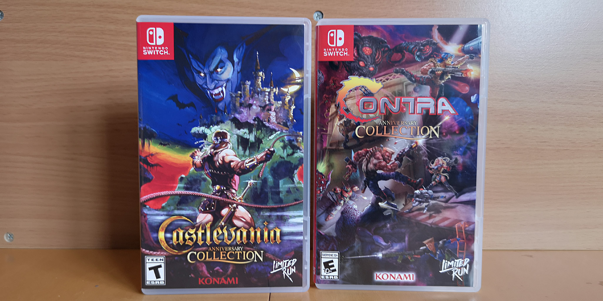 Continuing the Limited Run Games haul, we finally have the second VideoGamesPlus order from August making its appearance (which was held up due to stock issues) and that’s Castlevania Anniversary Collection and Contra Anniversary Collection from Konami for the Nintendo Switch. Both games feature English & Japanese versions of those retro titles and it’s a large collection consisting of NES/Famicom, SNES/Super Famicom, Game Boy, Mega Drive and more. The big omissions for the Castlevania package is Symphony of the Night and Rondo of Blood as those two were released in their own double-pack before this one.
