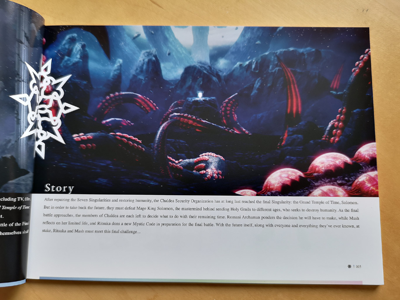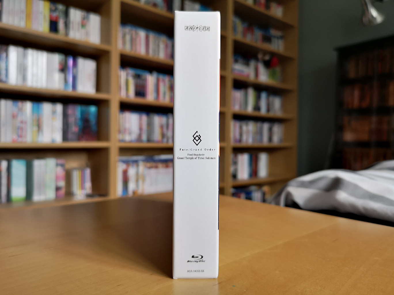 Aniplex of America are rather inconsistent when it comes to packaging designs because Fate/Grand Order Final Singularity – Grand Temple of Time: Solomon has somehow merged both the same position design as Babylonia with the DVD-sized digipack approach as Camelot.