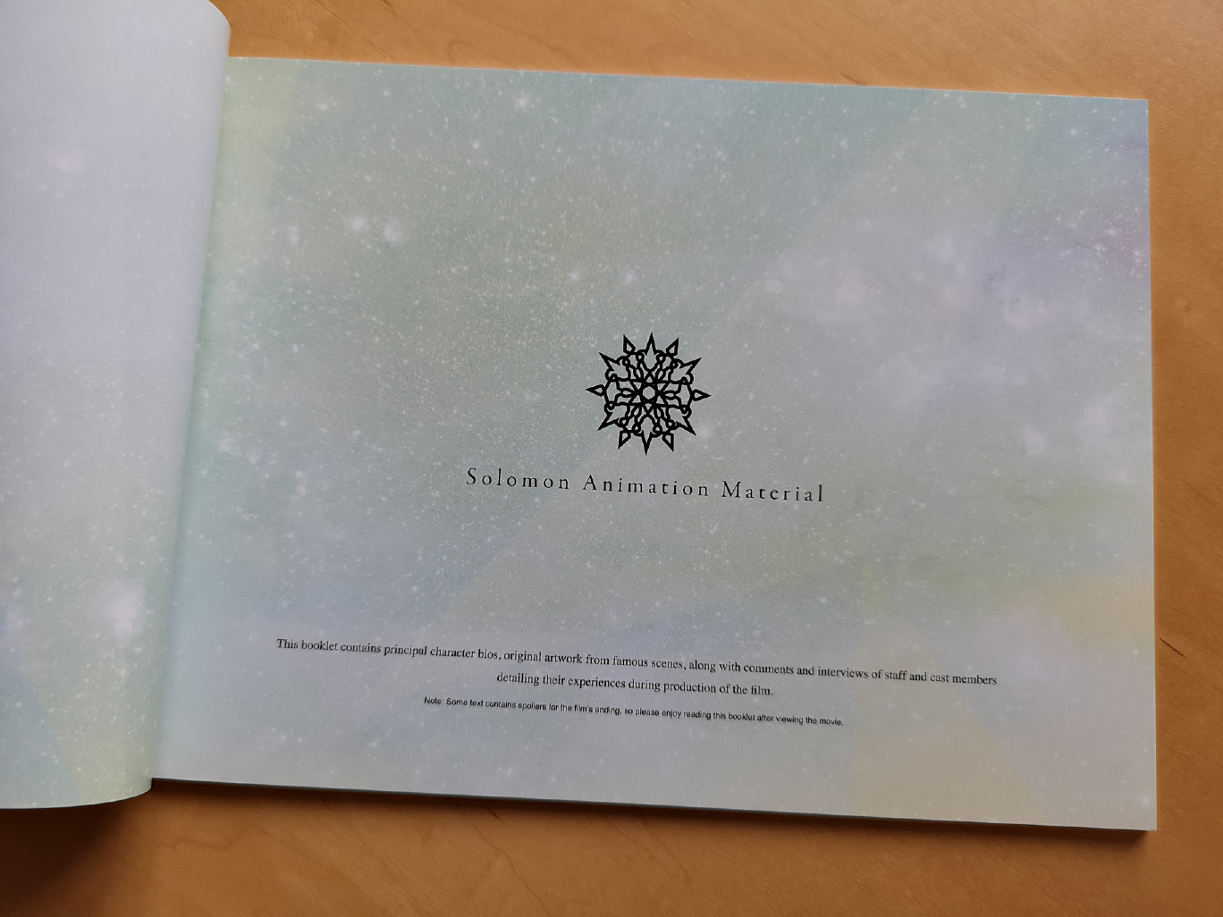 The limited edition box set features a rigid box that houses an digipack with the original soundtrack CD as well as two booklets; an Artbook and Animation Material. The Animation Material includes character designs, illustrations as well as interviews and information about the film plus its soundtrack. The Artbook focuses more on artwork illustrated by various artists to promote the film. Both films share the same format.