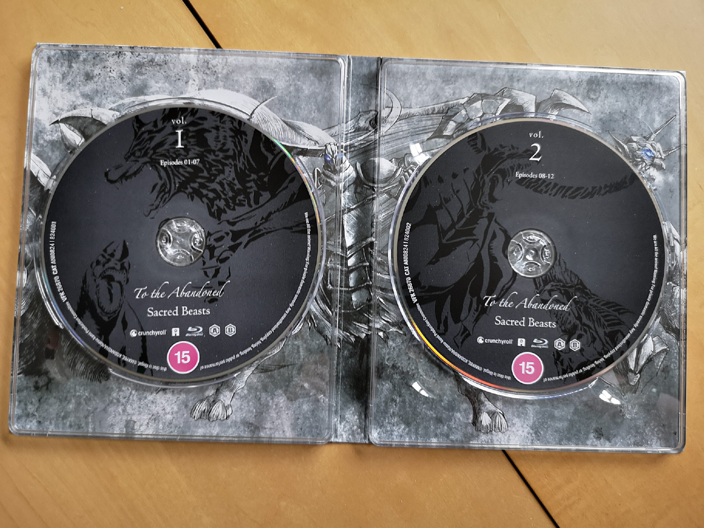 The collector’s edition release for To the Abandoned Sacred Beasts contains all 12 episodes across two Blu-ray discs, with the encode and authoring produced by VDMS.