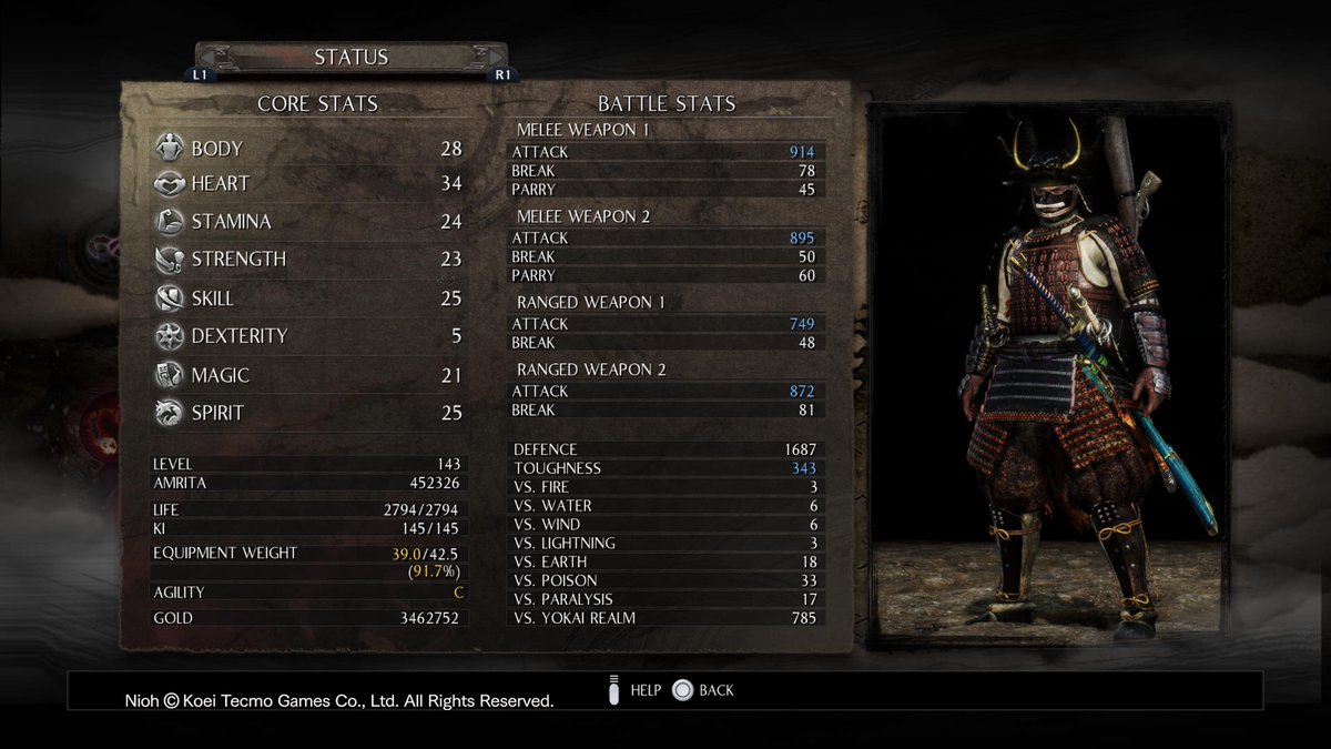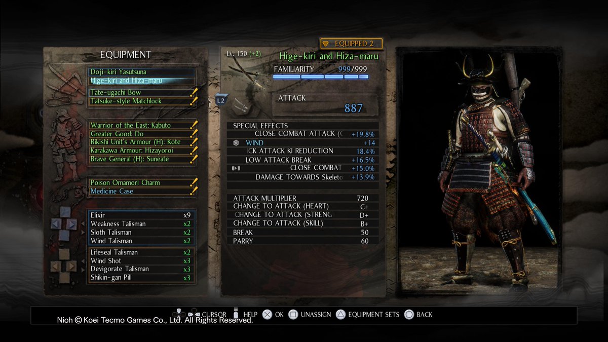 Worth noting that Nioh does have a habit where if you want to leave the mission, the game forces you to give up your Amrita – and Amrita is key to levelling your character’s stats. Sure the weapons are more important but any additional points to your HP and Attack/Ki Pulse does make a difference bit by bit.