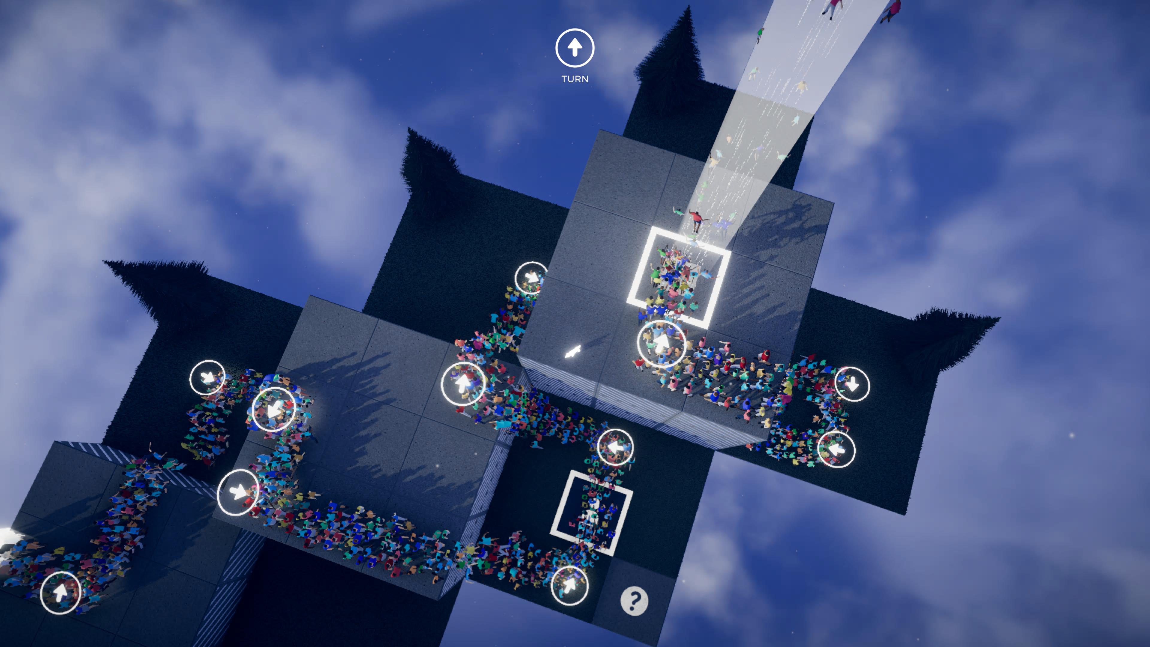 HUMANITY is about you controlling a dog that guides humans to the end goal, and along the way you can collect tall gold people who will also walk alongside humans to the end if you make sure they don’t fall off the edge. You guide humanity with actions like telling them to go to a specific direction, jump high, or allow them to glide after jumping to reach far distances.