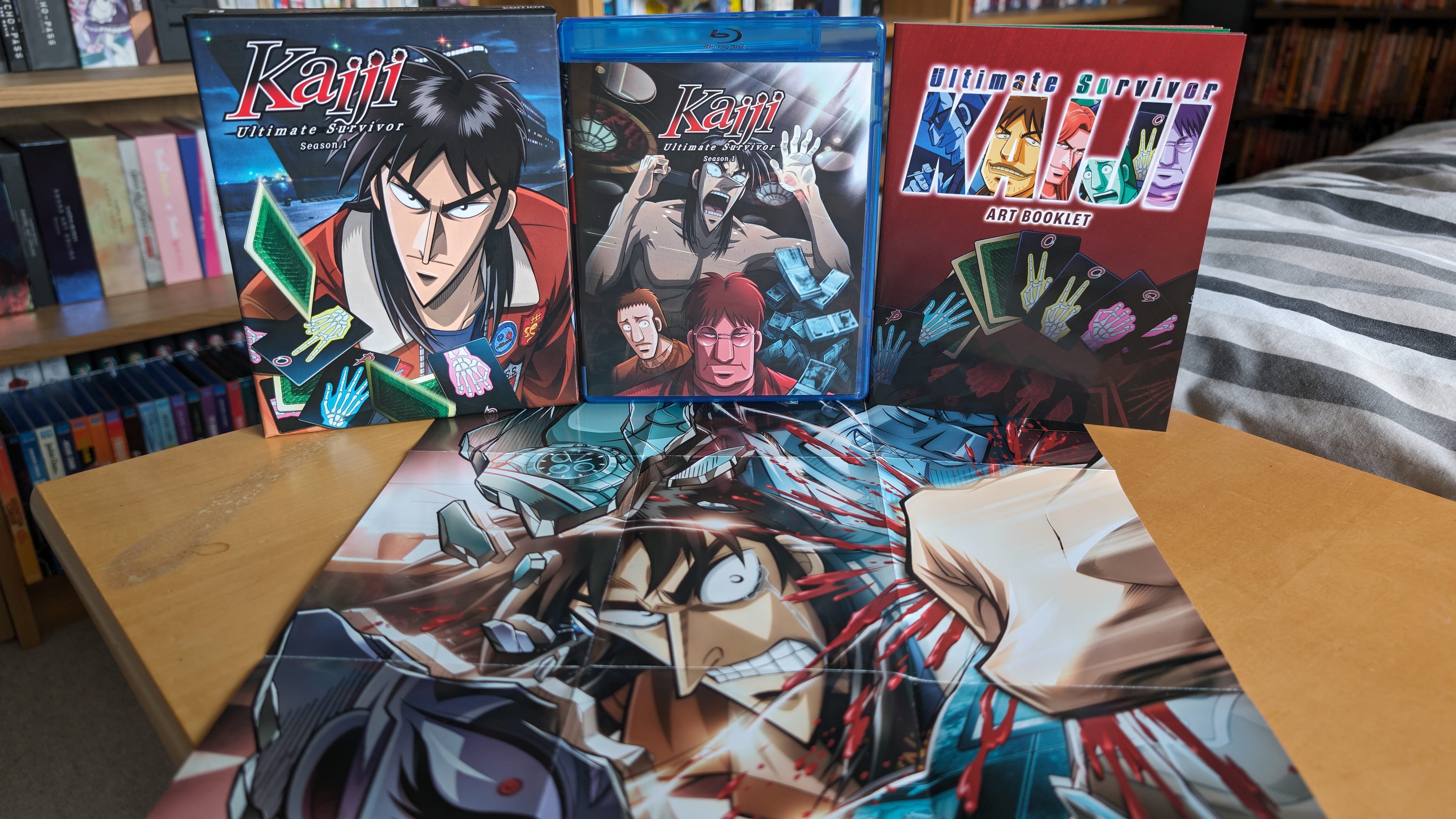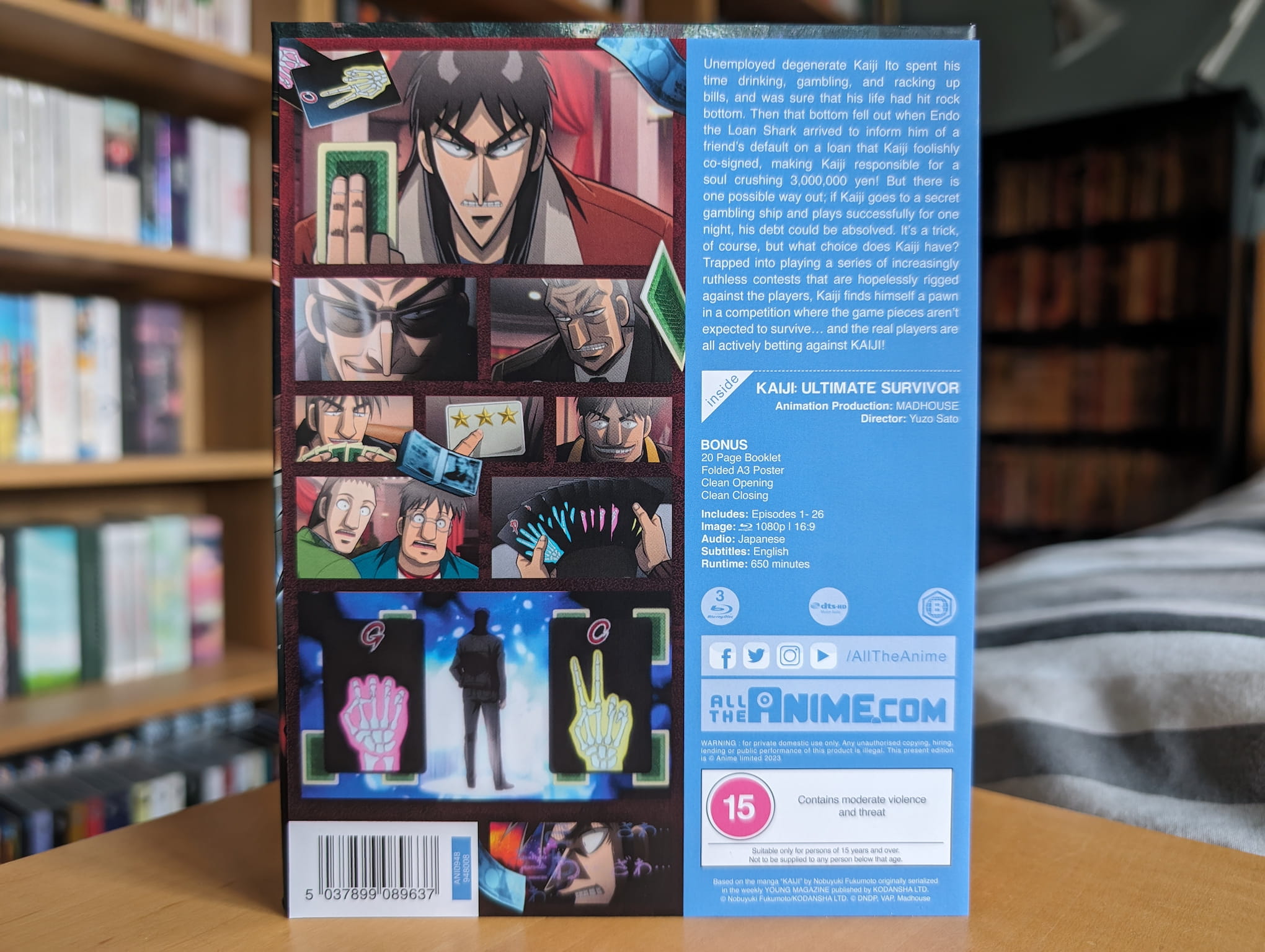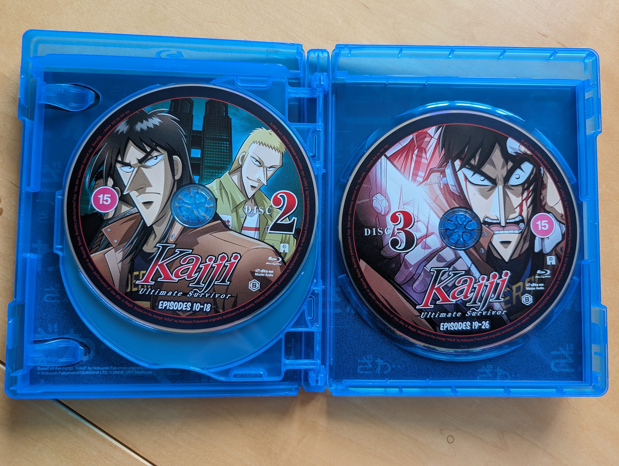 The collector’s edition release for Kaiji: Ultimate Survivor contains all 26 episodes across three Blu-ray discs, with the encode & authoring done by Sentai Filmworks via their 2021 complete series release.