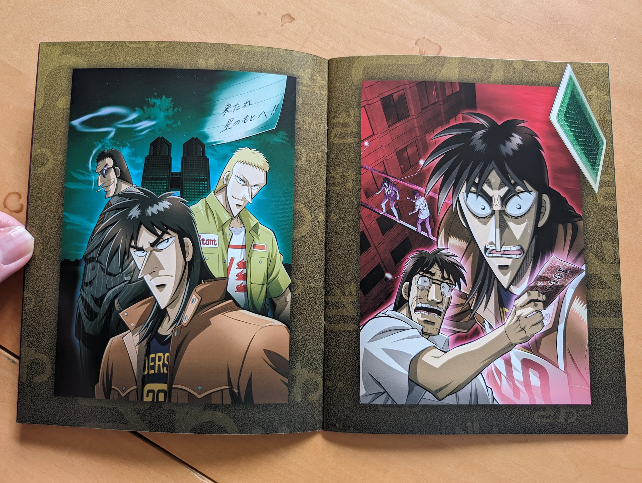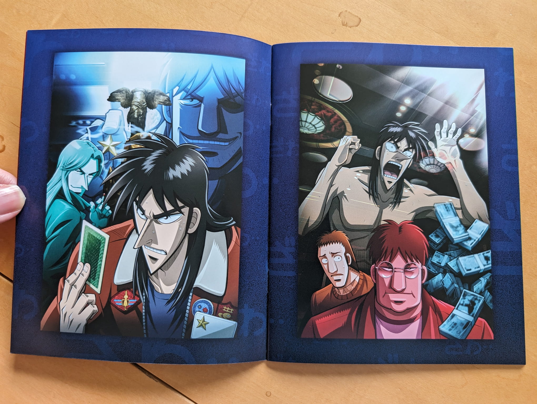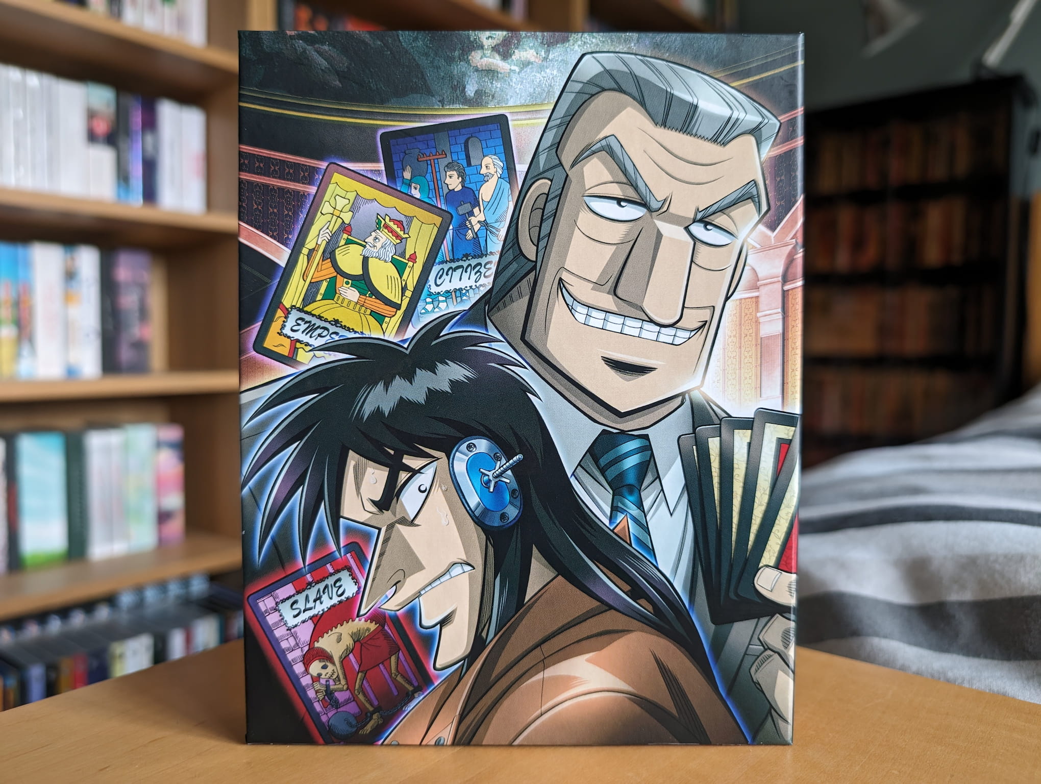 “Unemployed degenerate Kaiji Ito spent his time drinking, gambling, and racking up bills, and was sure that his life had hit rock bottom. Then that bottom fell out when Endo the Loan Shark arrived to inform him of a friend’s default on a loan that Kaiji foolishly co-signed, making Kaiji responsible for a soul crushing 3,000,000 yen! But there is one possible way out; if Kaiji goes to a secret gambling ship and plays successfully for one night, his debt could be absolved. It’s a trick, of course, but what choice does Kaiji have? Trapped into playing a series of increasingly ruthless contests that are hopelessly rigged against the players, Kaiji finds himself a pawn in a competition where the game pieces aren’t expected to survive… and the real players are all actively betting against KAIJI!”