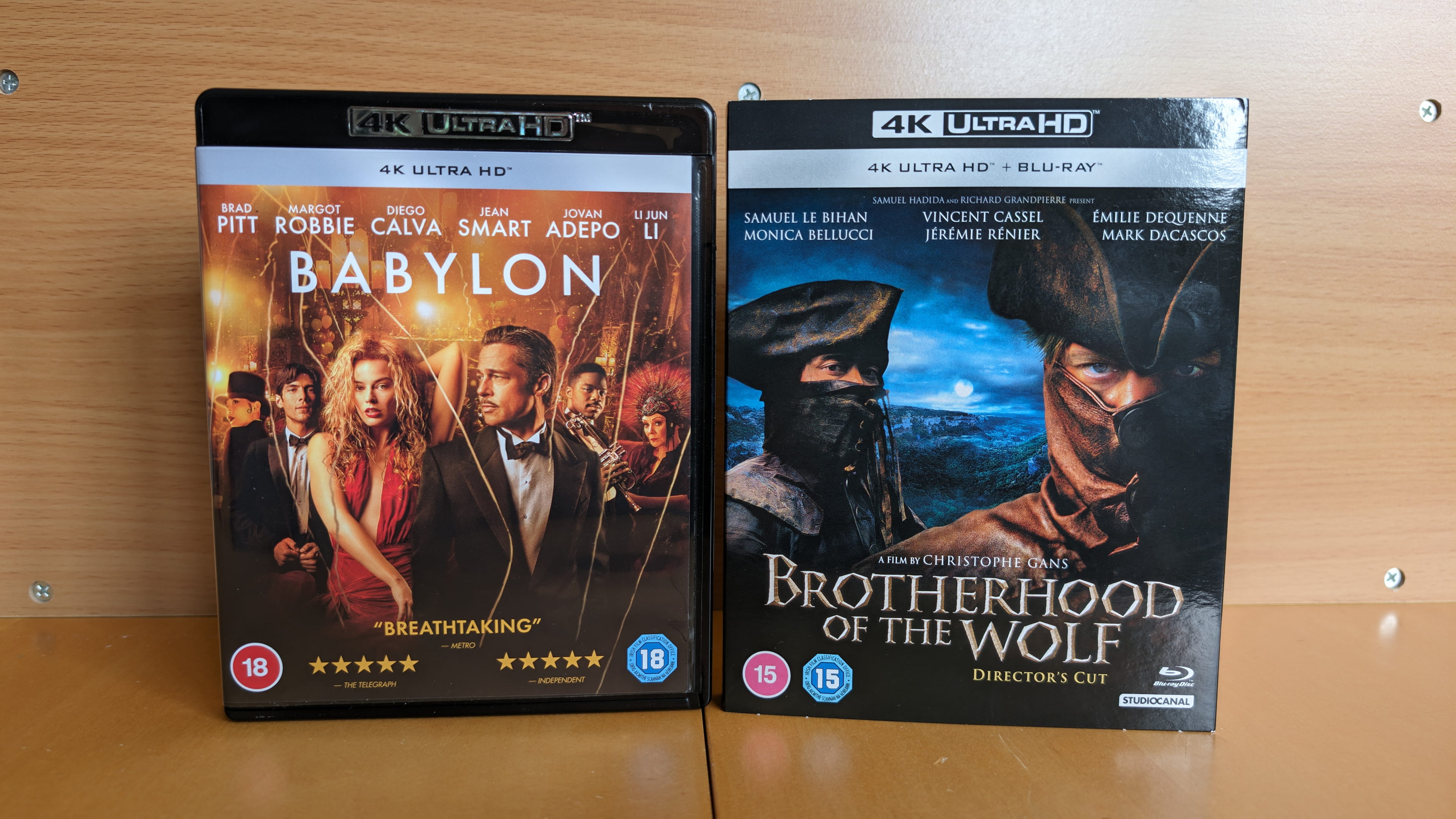 Starting off with the HMV trip where I picked up two more 4K Ultra HD films available as part of their 2 for £30 deal. Those being Damien Chazelle’s Babylon and Christophe Gans’s Brotherhood of the Wolf (Le Pacte des loups), the latter of which is a French film that Studio Canal recently released in the new format.