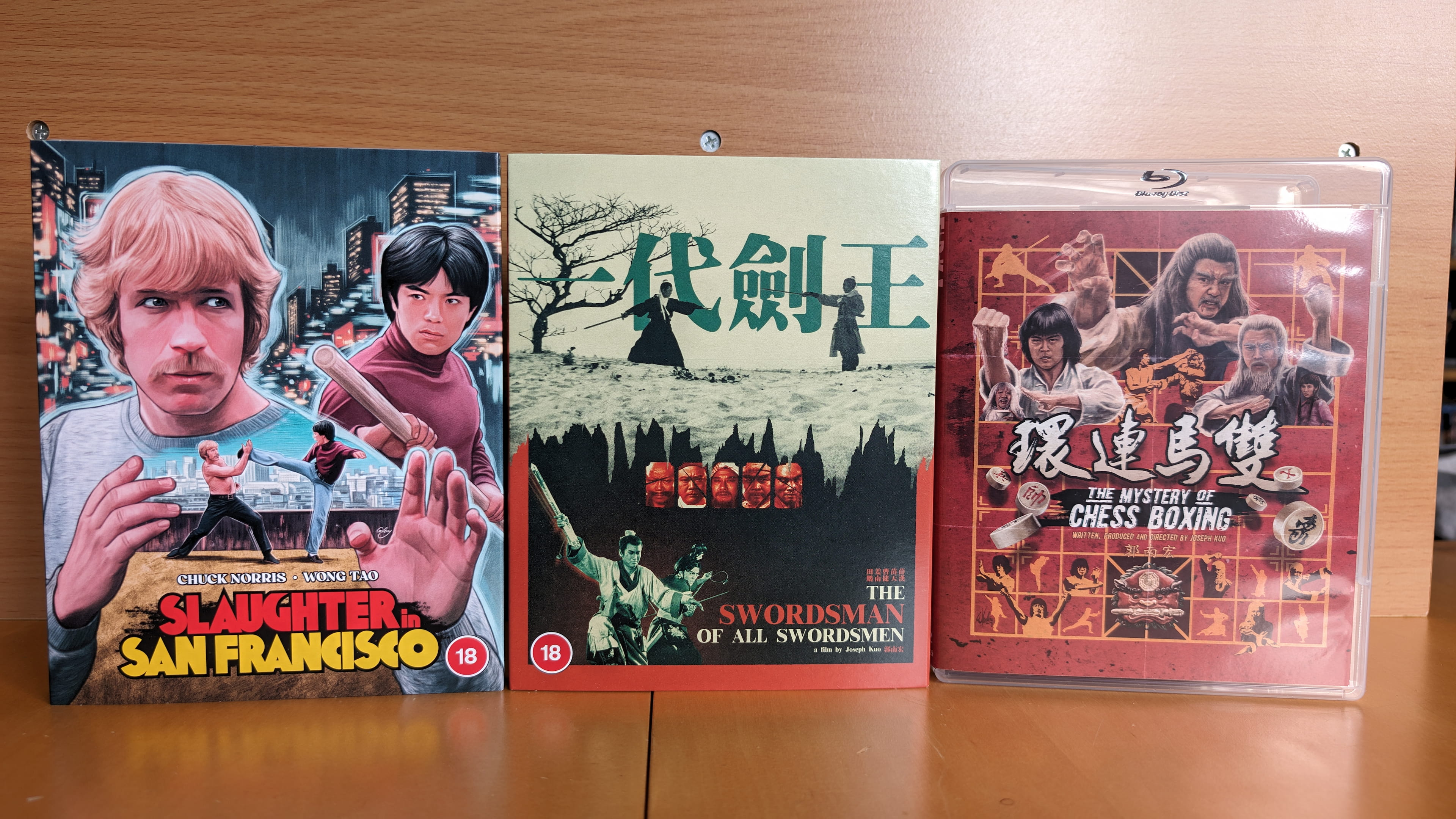 I prioritised two of the four from the latest February & March batches of releases. From the February line-up is Lo Wei’s 1974 Hong Kong/USA film Slaughter In San Francisco (黃面老虎), also known as Yellow Faced Tiger which obviously won’t work nowadays. This film stars Chuck Norris which is neat to see and I had initially thought that I didn’t own any films that included him in a role, until I discovered he’s a friend of Bruce Lee and was featured in The Way of the Dragon!