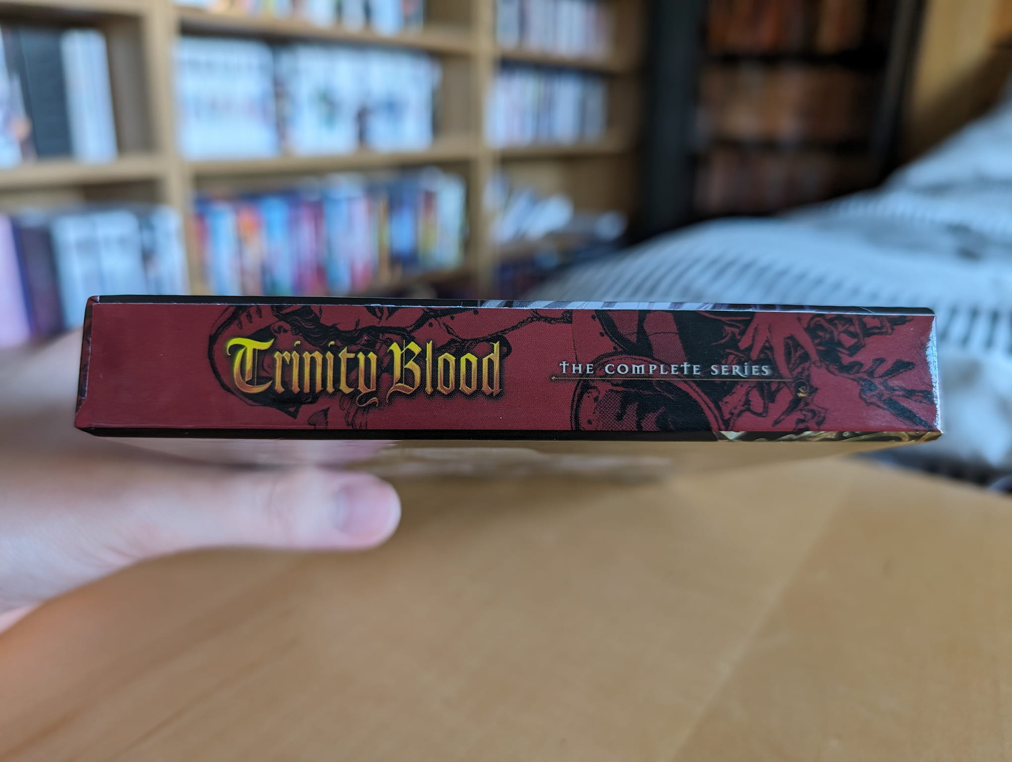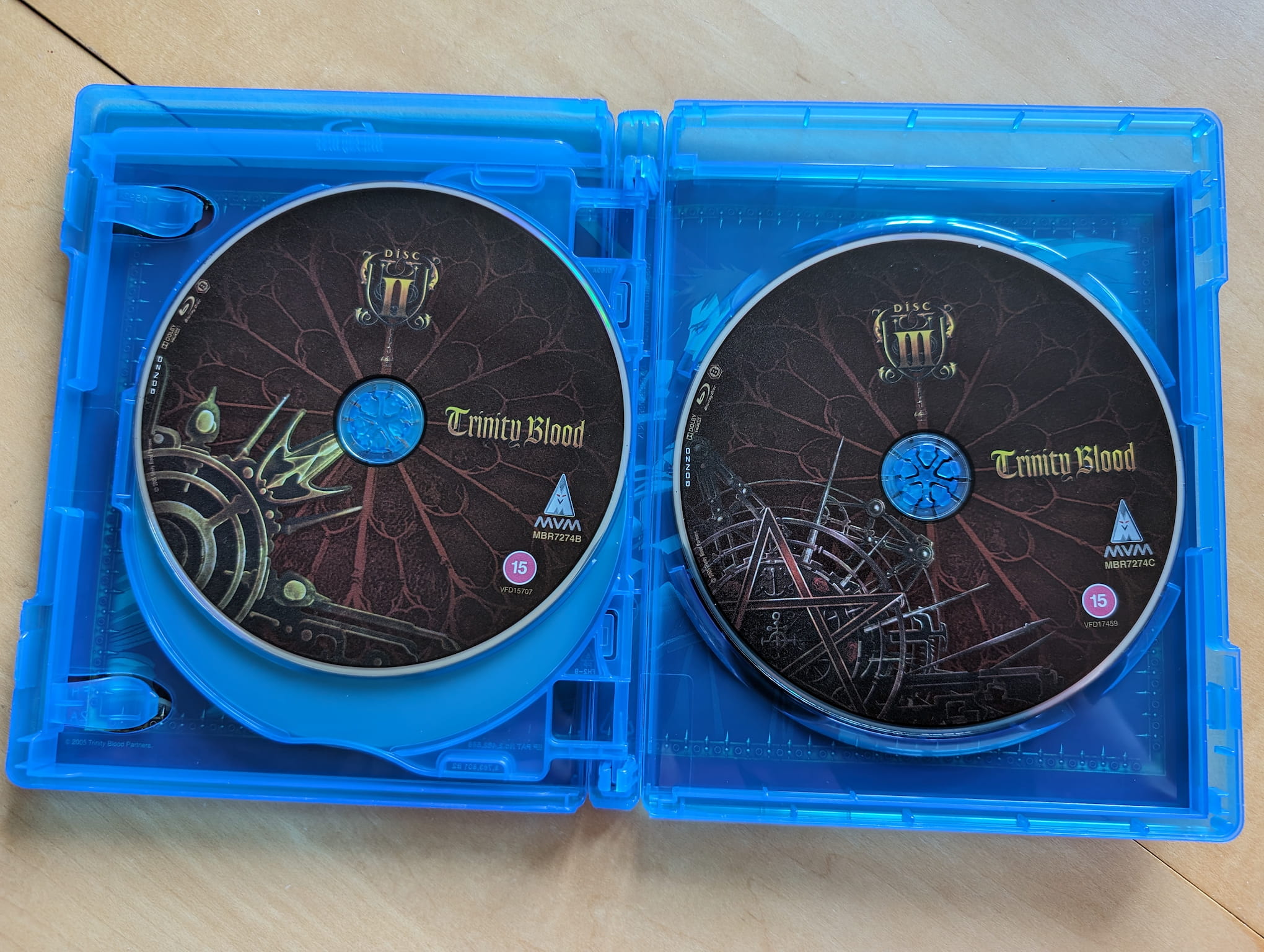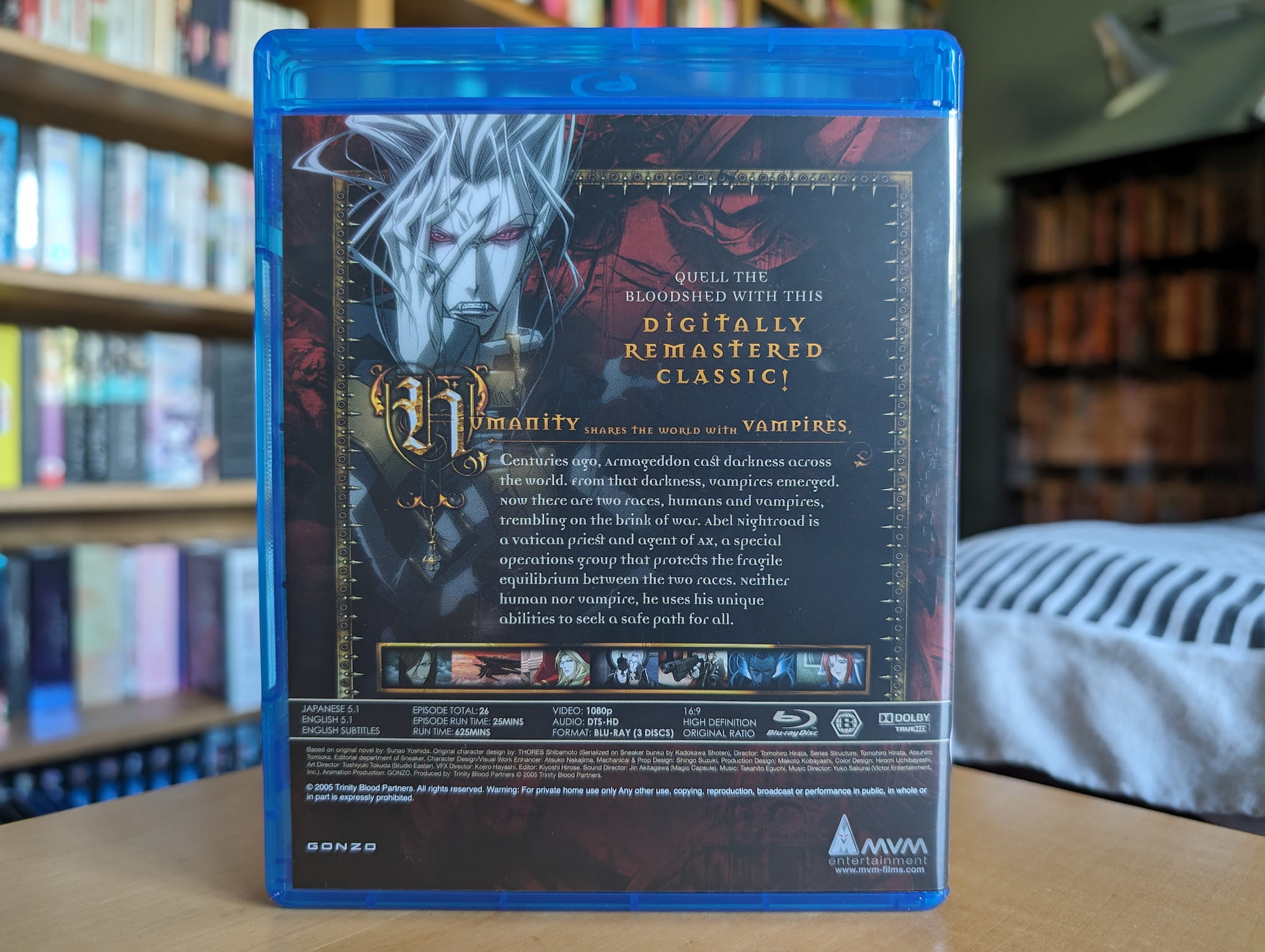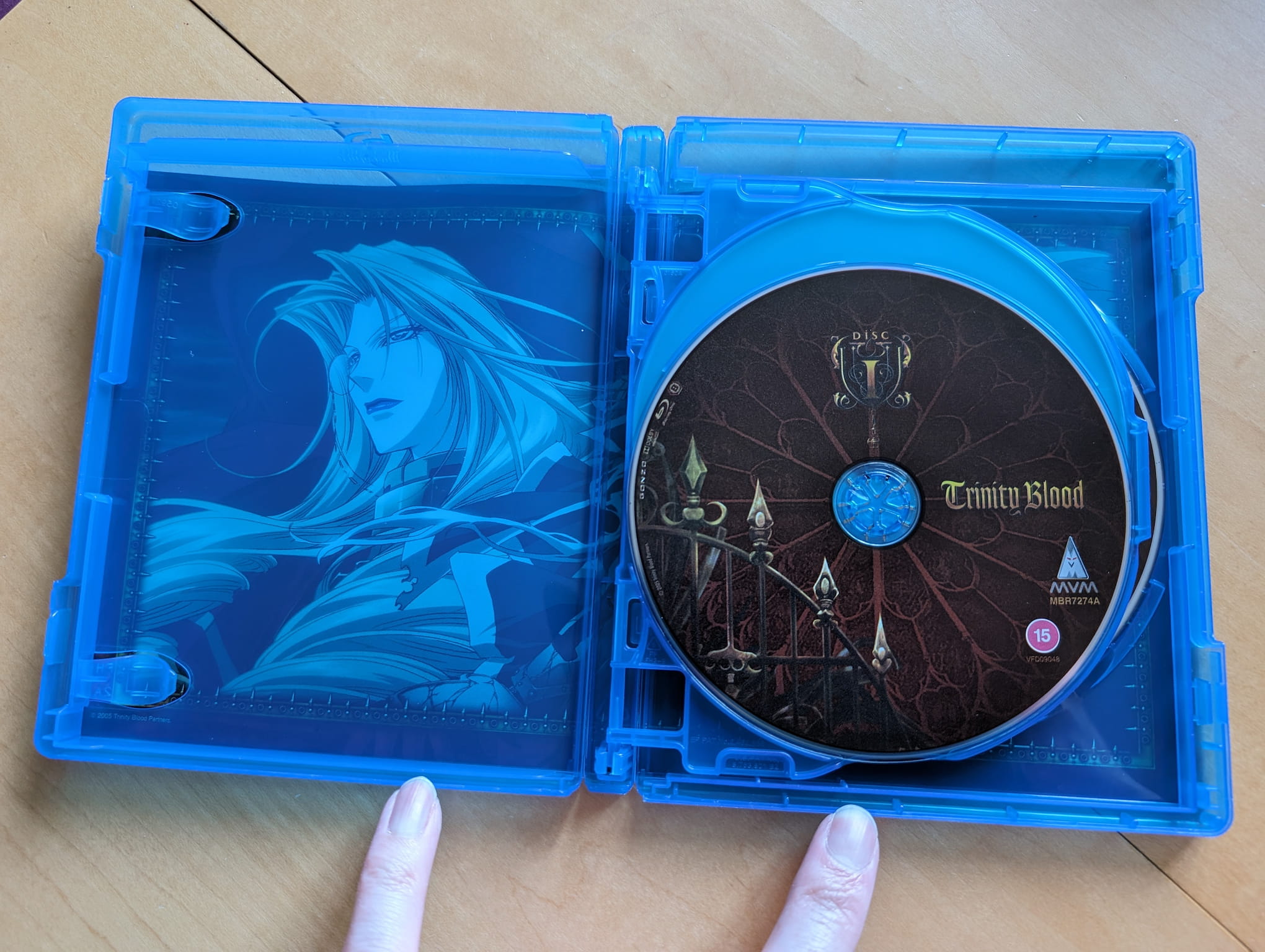 MVM Entertainment in the United Kingdom released Trinity Blood many years back when they were putting out single volumes and also thick box sets for their DVD titles. The series had remained in print for at least a decade, until eventually the DVDs went out of print. Then MVM announced they had picked up a select number of Gonzo shows they previously released and will be releasing them on the Blu-ray format, which included Trinity Blood. With the Funimation catalogue slowly going out of print (with some returning under the Crunchyroll branding), it’s good timing for the series to remain in print here in the UK.