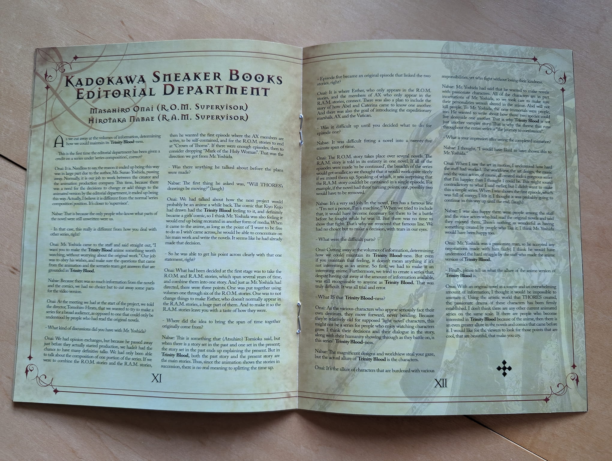 What I like about MVM Entertainment’s collector’s editions for Trinity Blood and a few other Gonzo shows is that they are basically taking the assets from Funimation’s original Blu-ray releases which is rather nostalgic in a way.