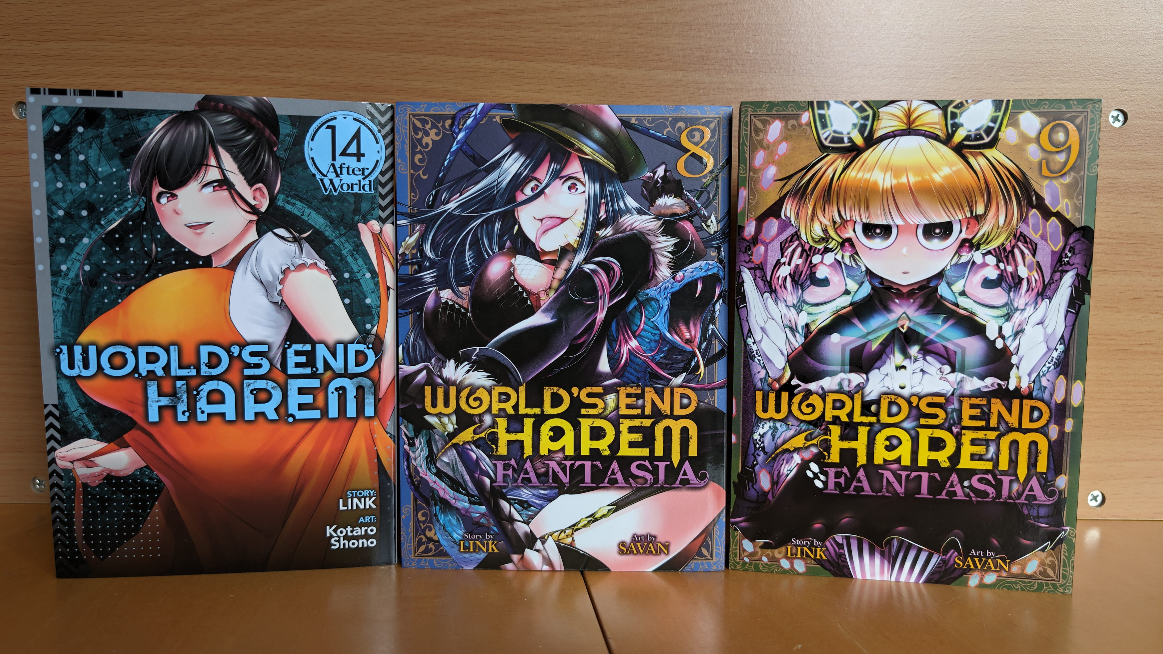 We have Do You Like Big Girls volumes 5 & 6, which for some reason the distributor is now releasing omnibus editions so I’m concerned about the future volumes for collecting at this point. Since the series started its second part, we have World’s End Harem volumes 13 & 14 which begins the After World storyline. This manga has ended officially at around volume 18 so there’s just a few left to go now. And then there’s World’s End Harem: Fantasia volumes 8 & 9 which I believe is still on-going.