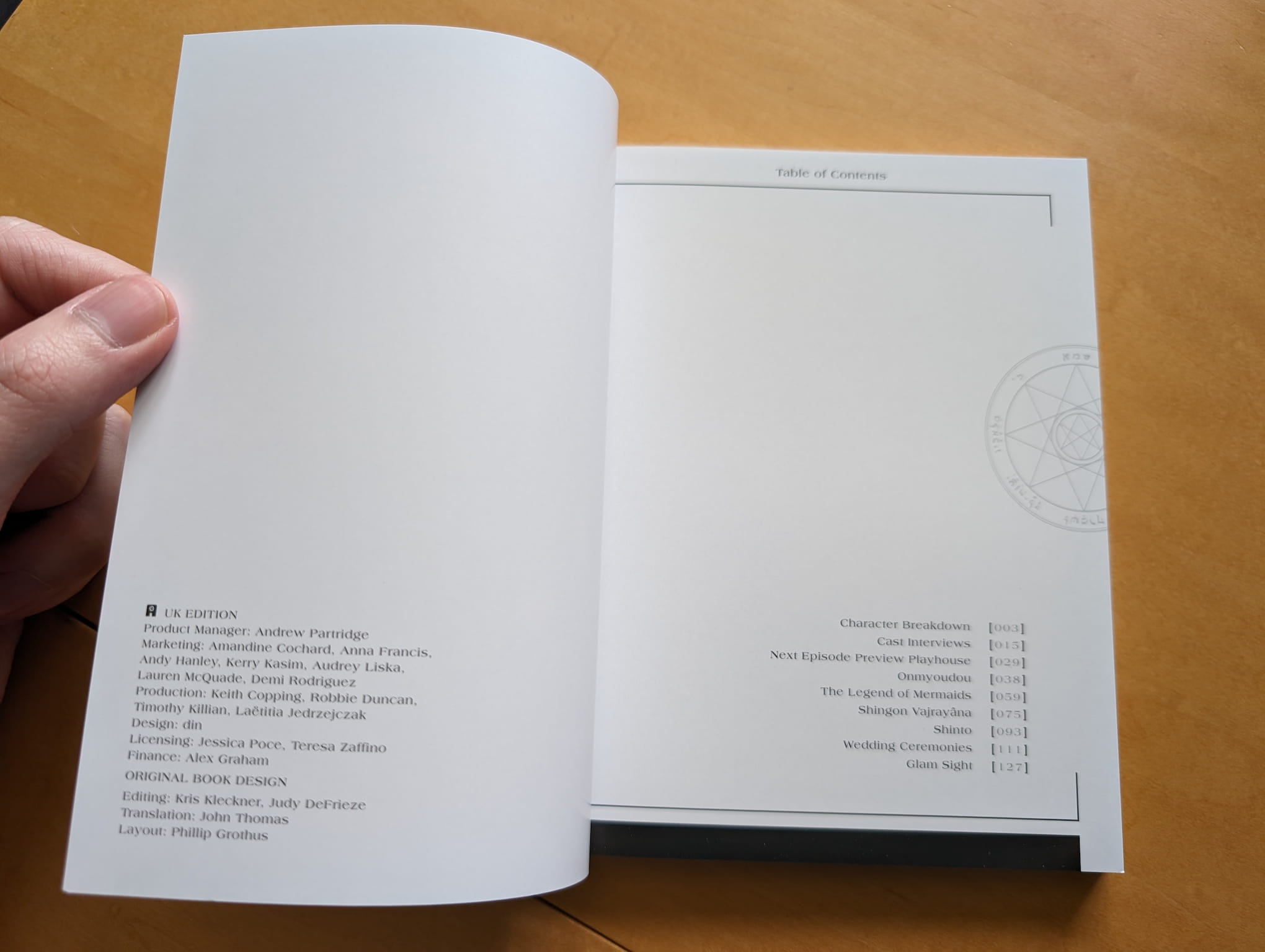 Each part is presented with a rigid box containing an Amaray case to house the Blu-ray discs, and in each box set comes included with a couple of art cards and a big booklet (132 pages in Part 1’s book, and 144 pages in Part 2’s book). Each book contains artwork, interviews from the staff about the series and additional information about the show’s world.