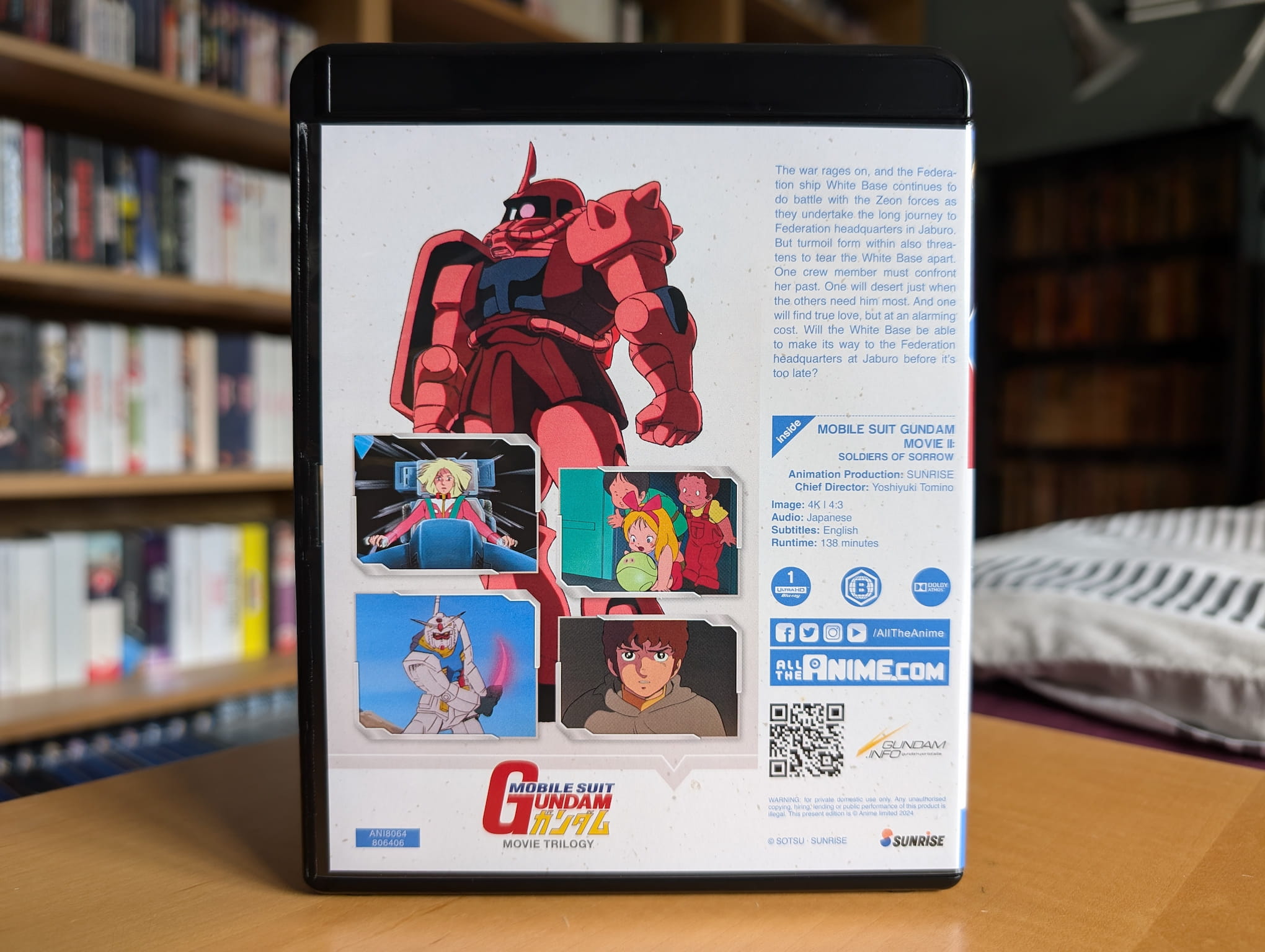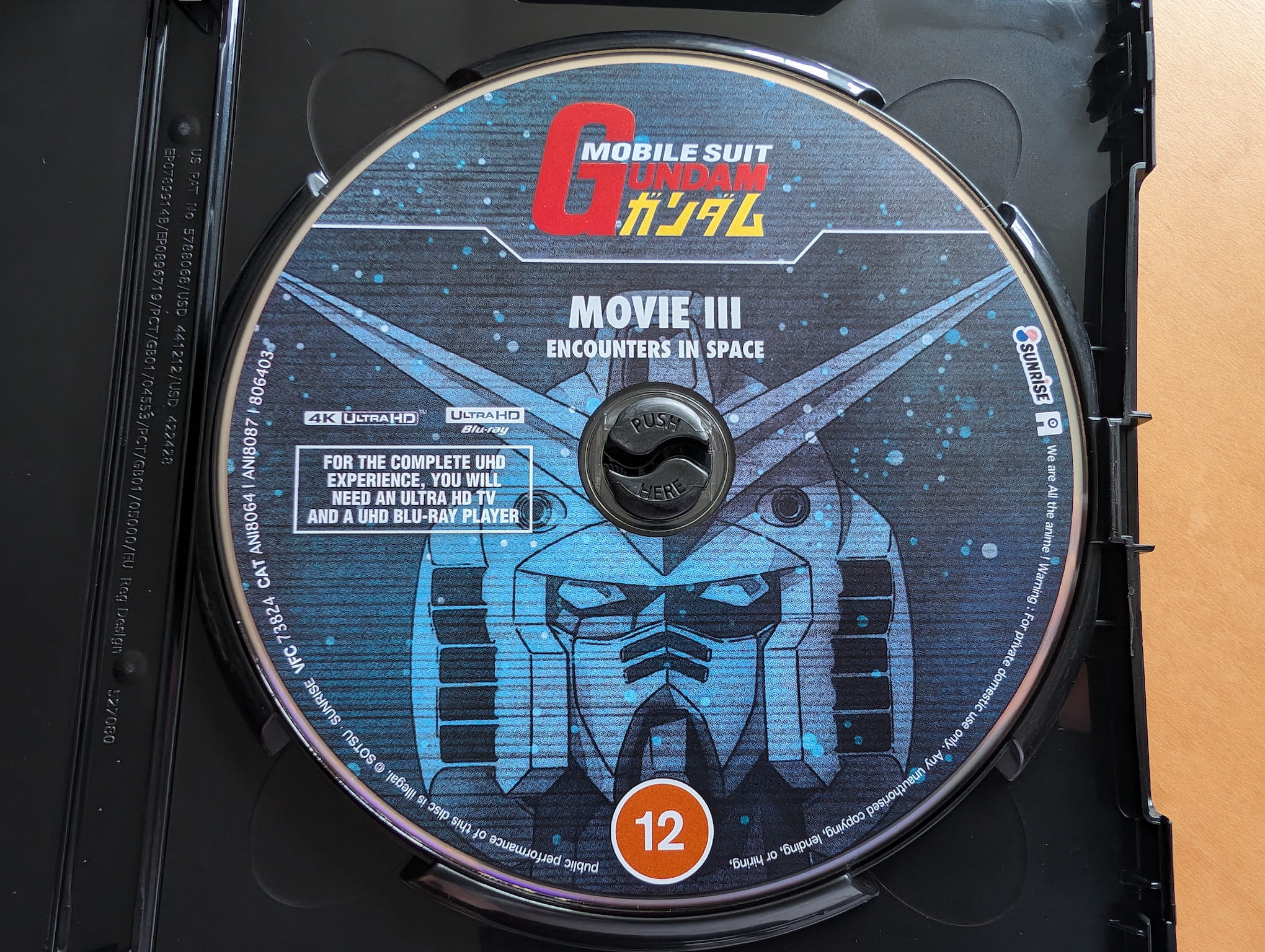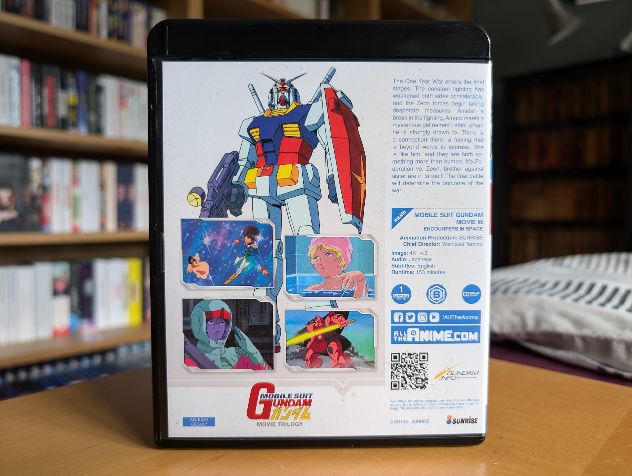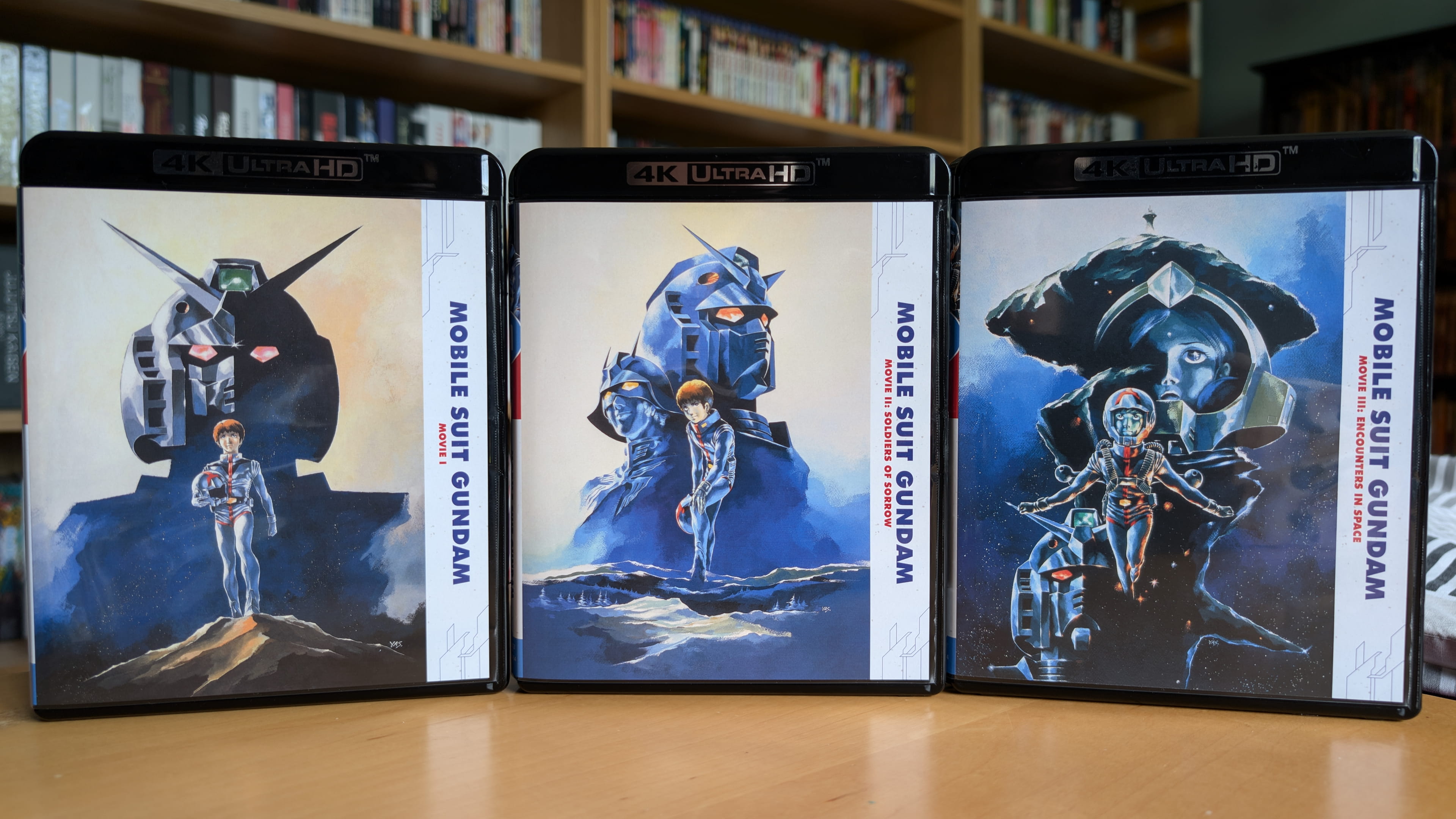 The collector’s edition release for Mobile Suit Gundam: The Movie Trilogy contains all three films on a 4K Ultra HD disc each (three in total).