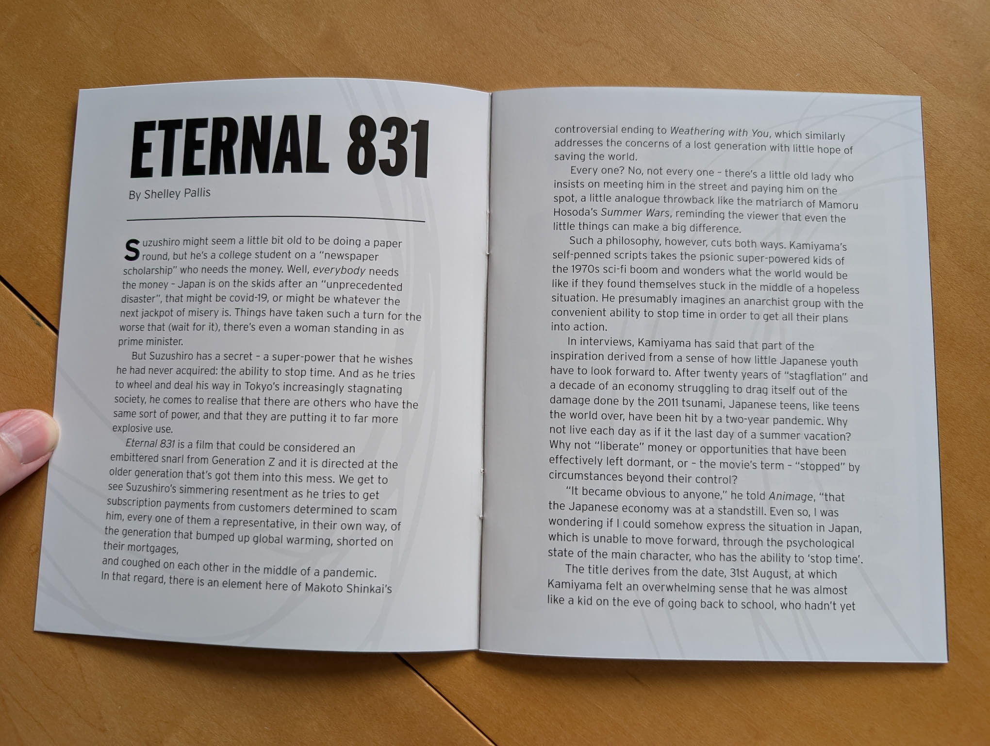 Eternal 831 (永遠の831, Eien no 831) is a 2022 original television special film directed & written by Kenji Kamiyama, and produced by studio Craftar. Staff credits also include CGI director Hiroki Matsuura, character designer Kōichirō Kawano, and music composer Gō Shiina. The television special first aired in Japan on January 2022.