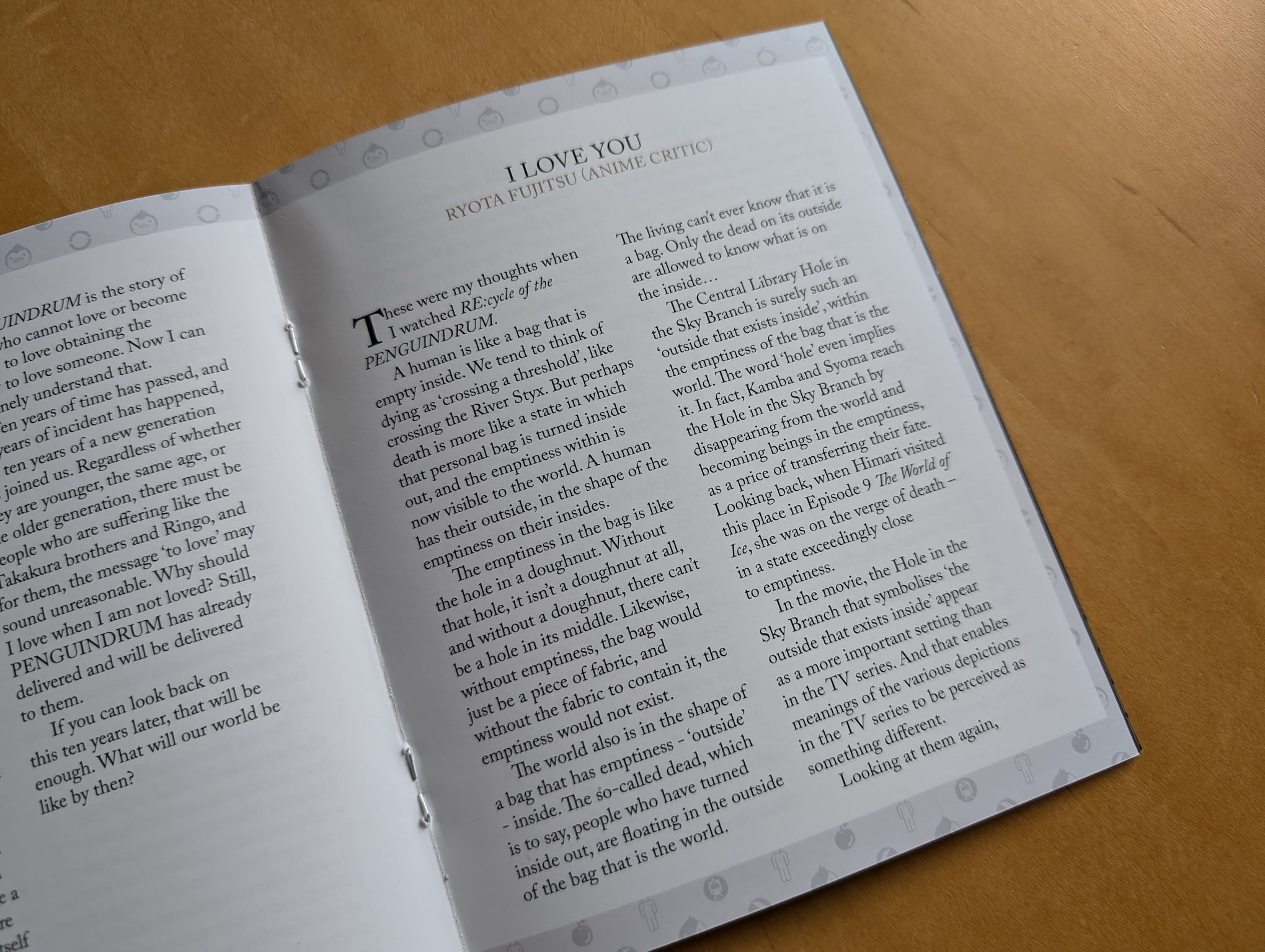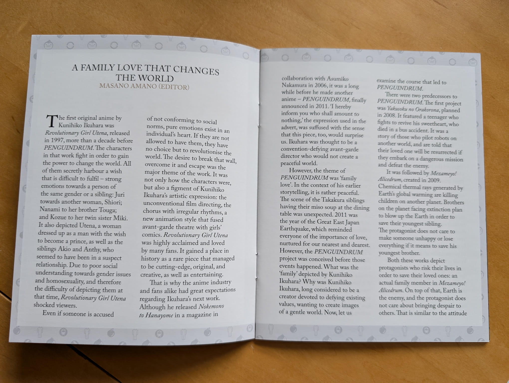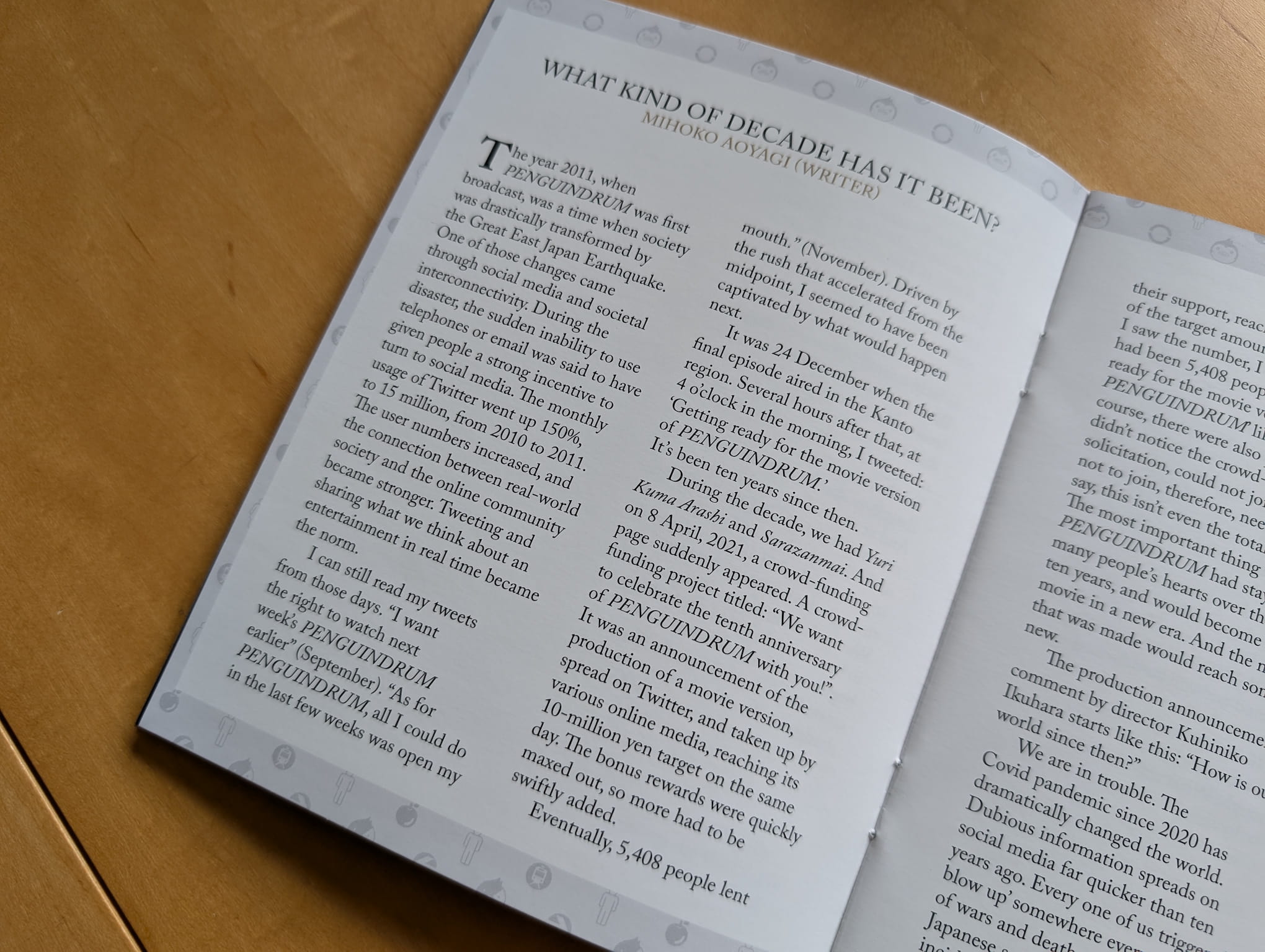 Re:cycle of the Penguindrum (劇場版 RE:cycle of the PENGUINDRUM), also stylised & written as RE:cycle of PENGUINDRUM, is a 2022 original theatrical anime film series directed & written by Kunihiko Ikuhara, and produced by studio Lapin Track with footage from studio Brain’s Base. Staff credits also include writer Takayo Ikami, character designers Terumi Nishii & Tomomi Kawatsuma with original character designer Lily Hoshino, and music composer Yukari Hashimoto.
