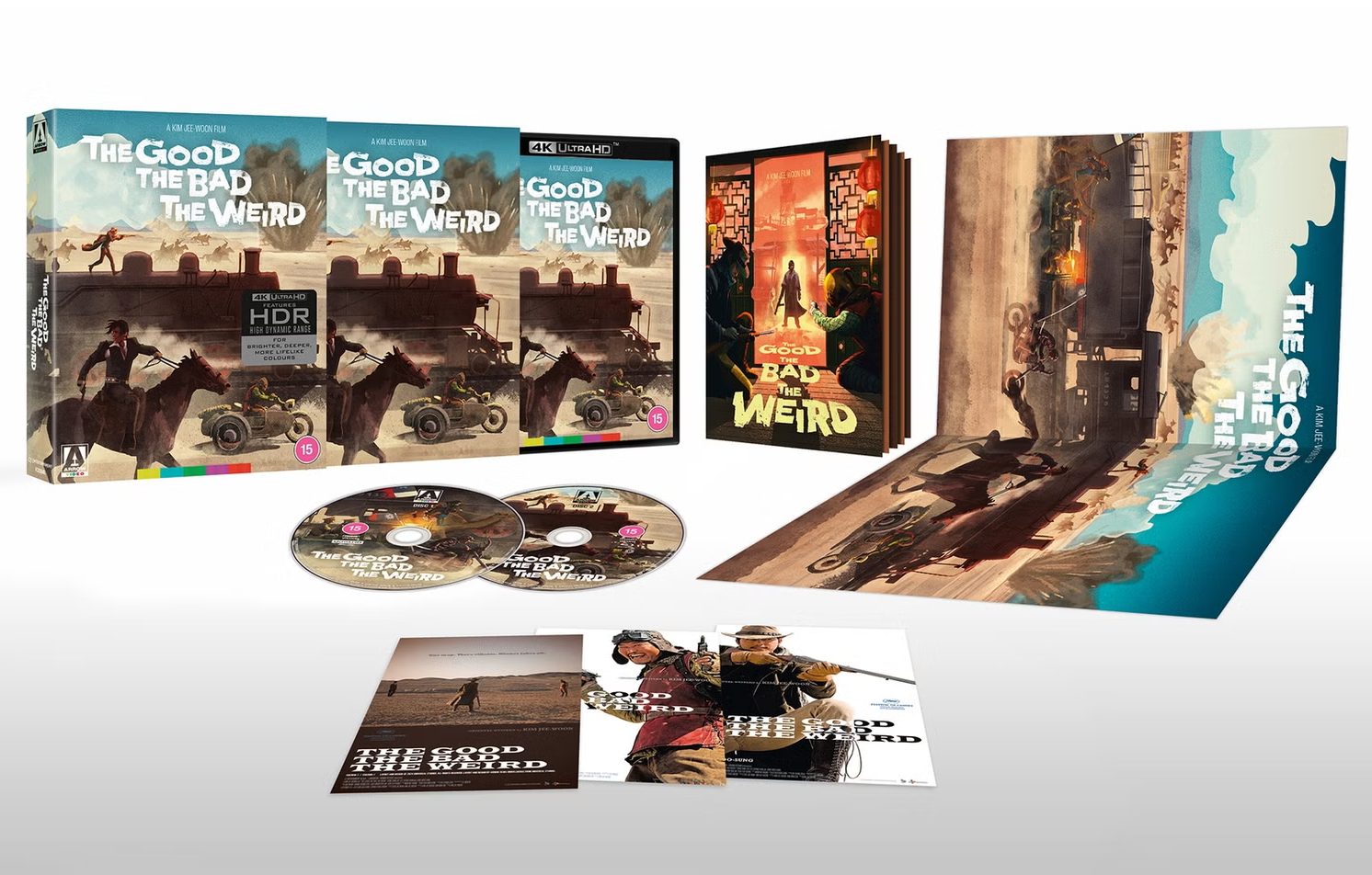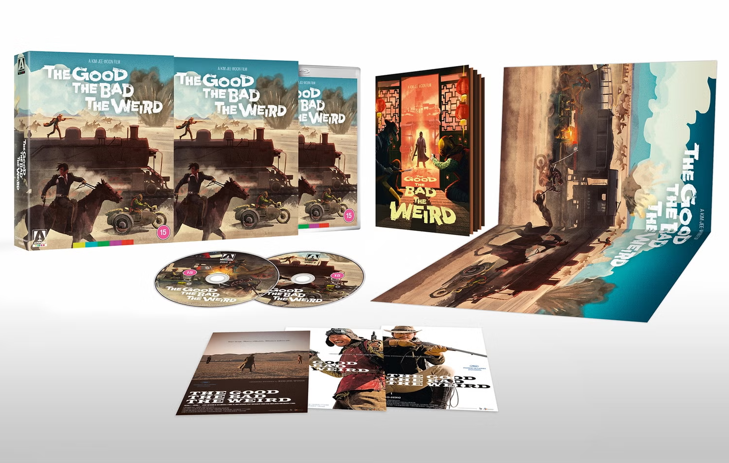 | Main Feature Disc: – Brand new audio commentary by film critic James Marsh and film critic and producer Pierce Conran – Archival audio commentary by director Kim Jee-woon and actors Song Kang-ho, Lee Byung-hun, and Jung Woo-sung (International version) – Archival audio commentary by director Kim Jee-woon, cinematographer Lee mogae, lighting director Oh Seung-chul, and art director Cho Hwa-sung (Korean Version) – A new introduction to the film by Kim Jee-woon Bonus Blu-ray Disc: – Corralling chaos in the desert, a new interview with director Kim Jee-woon – Dusty dust-ups and sweaty saddles, a new interview with martial arts coordinator Jung Doo-hong – Archival making of films and featurettes – Trailer gallery – Image gallery |