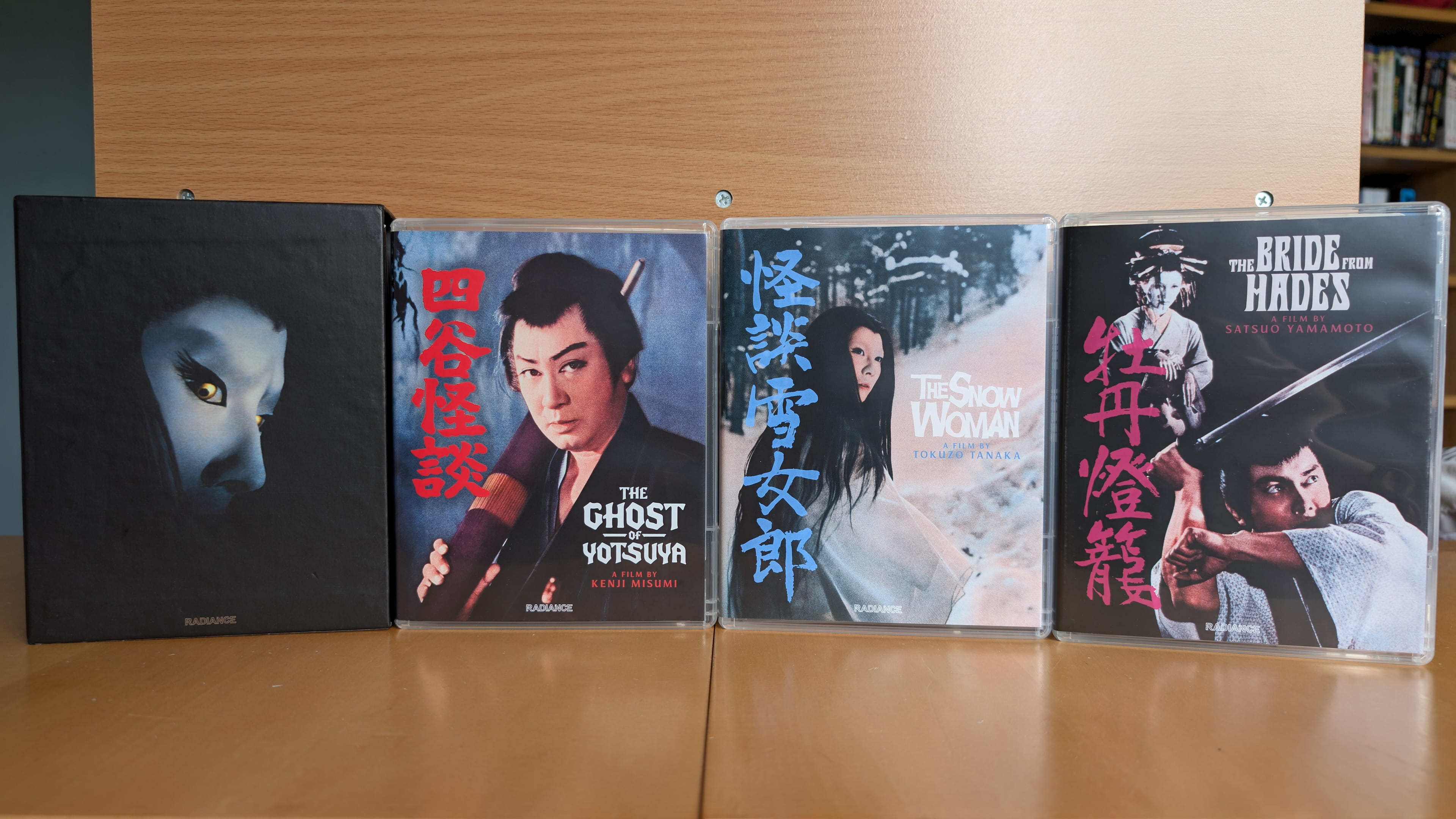 The films included are Kenji Misumi’s 1959 film The Ghost of Yotsuya (四谷怪談), Tokuzō Tanaka’s 1969 film The Snow Woman (怪談雪女郎), and Satsuo Yamamoto’s 1969 film The Bride from Hades (牡丹燈籠). The box set has a well-detailed book which includes two short stories that add more context to what the films yokai came from. It’s a well-presented release and it fits in line with the winter snow we recently received and the holiday season.