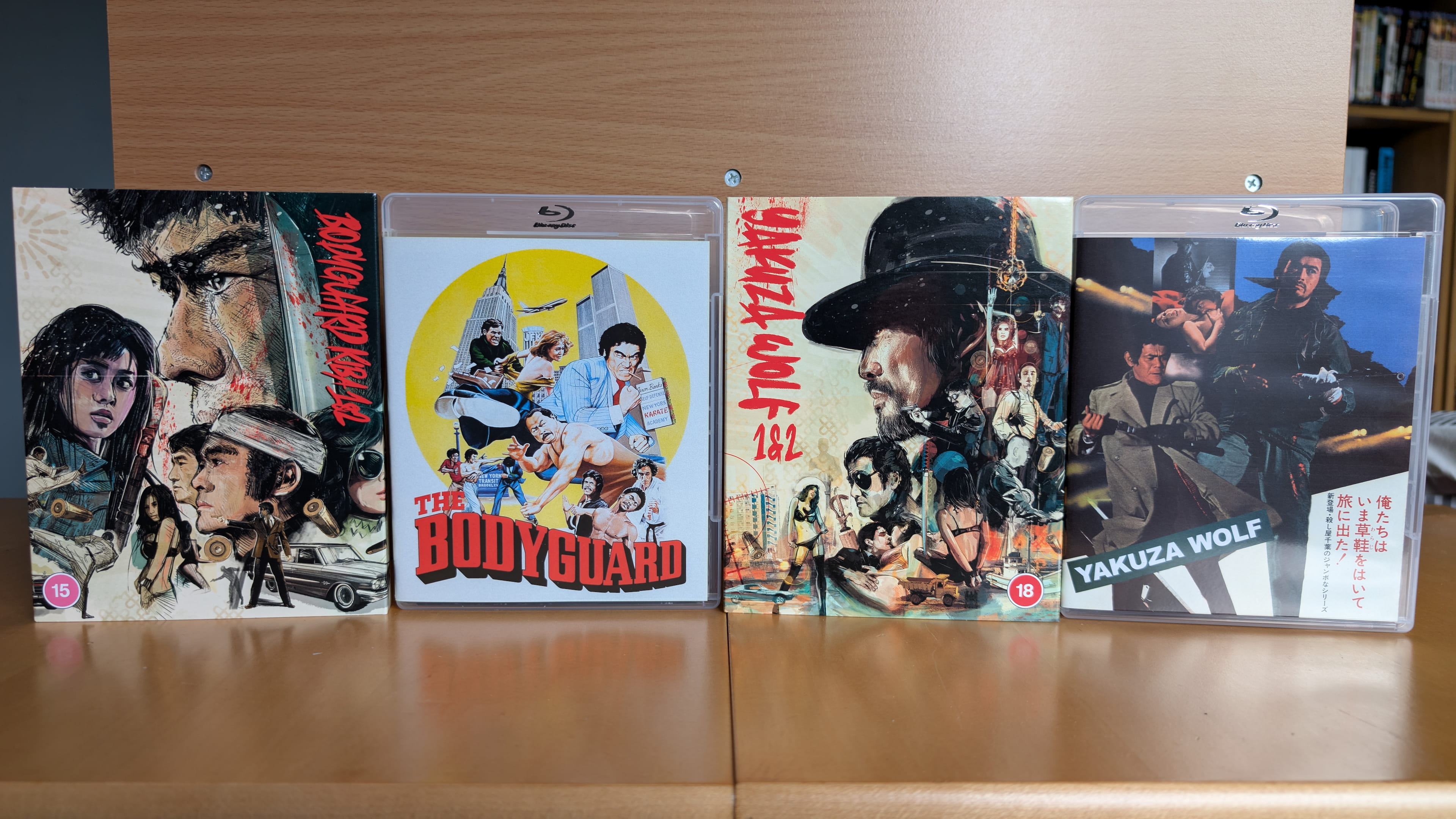 Two of the titles I missed were available in their mini-sale so I picked up both, especially considering it looked like their first print editions are selling out. These are double-film collections starring the late Sonny Chiba called Bodyguard Kiba 1 & 2 and Yakuza Wolf 1 & 2.