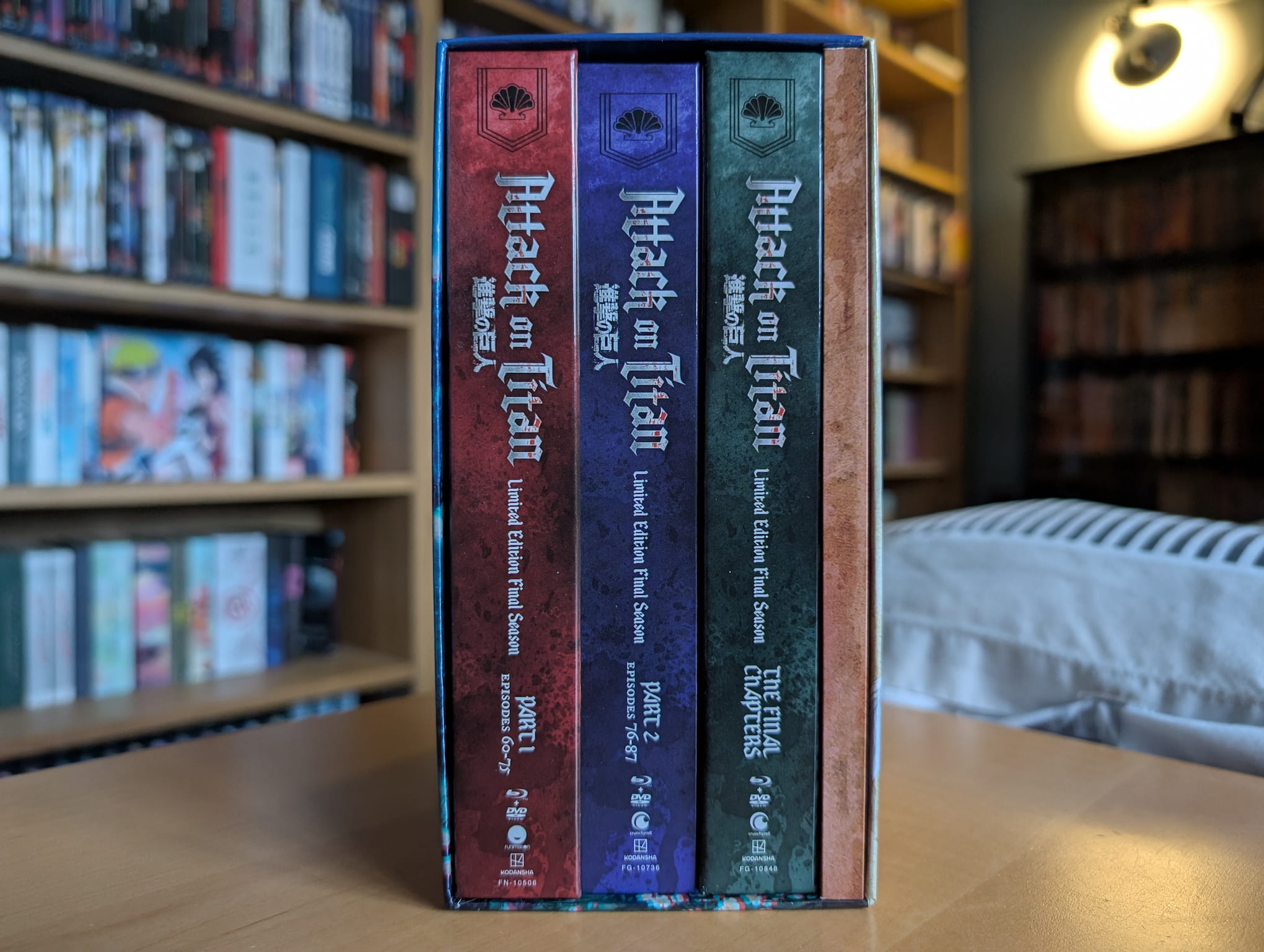 - Rigid Outer Box with clean artwork to house Attack on Titan: The Final Season Parts 1-3 limited edition digibook releases