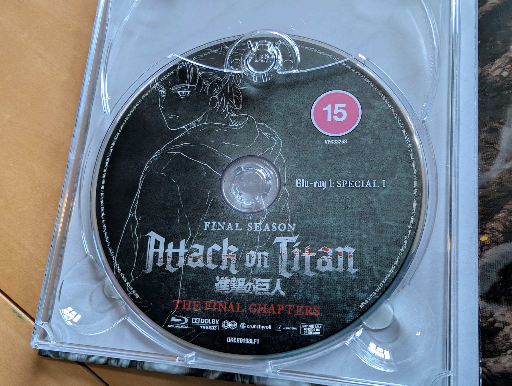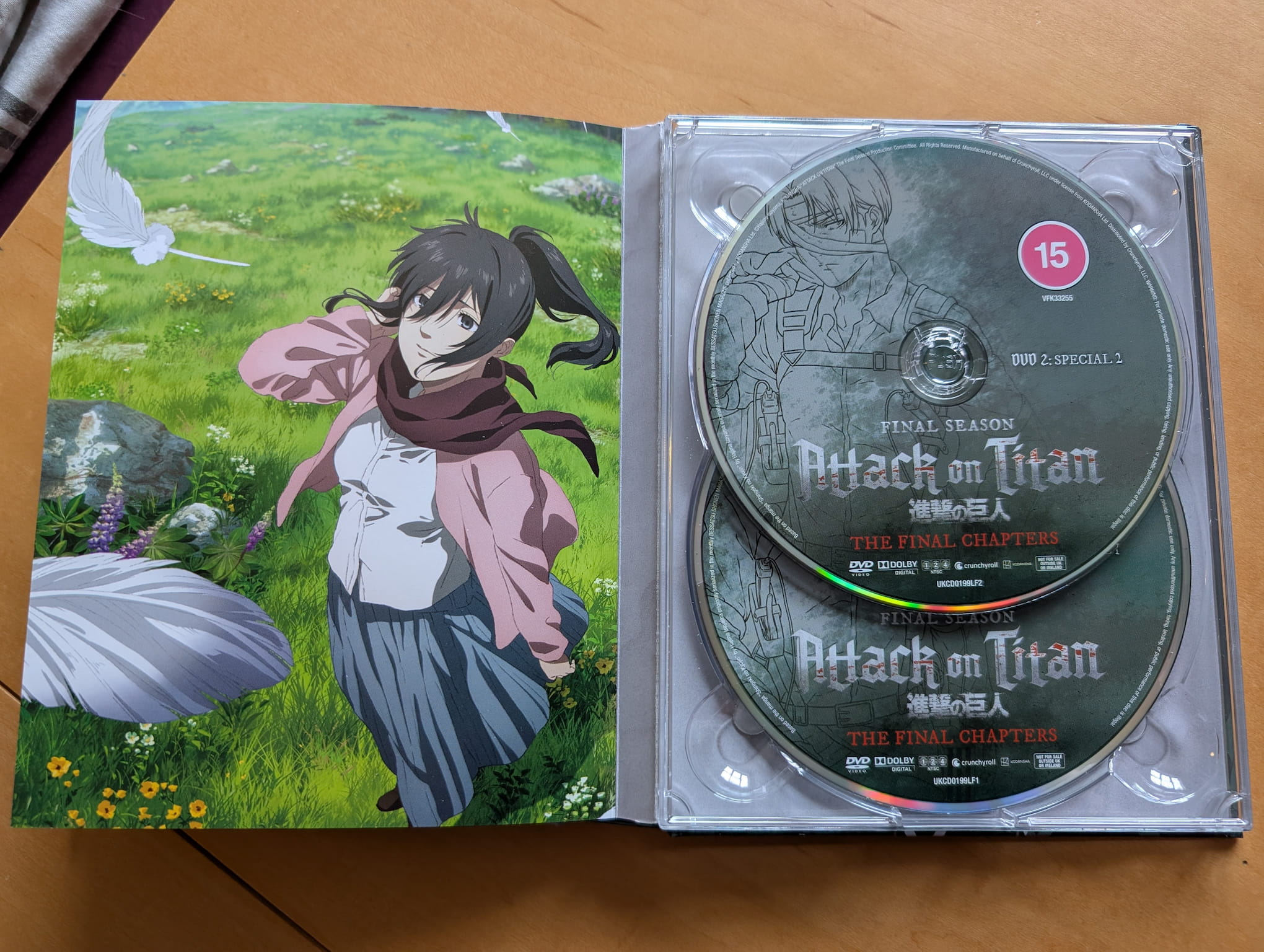 The limited edition release for Attack on Titan: The Final Season: The Final Chapters contains both television specials across two Blu-ray discs and two DVD discs. All the discs were authored and encoded by Crunchyroll.