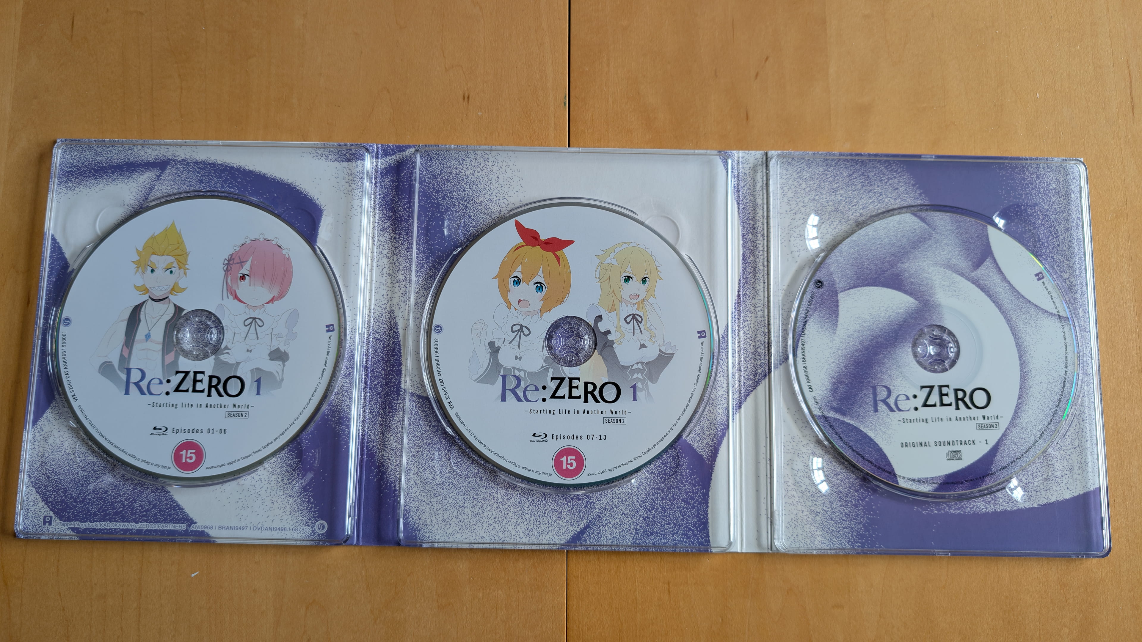 The collector’s edition Part 1 release for Re:ZERO -Starting Life in Another World- Season 2 contains the first cour of the series, episodes 1-13, across two Blu-ray discs. All the discs were encoded and authored by Crunchyroll.