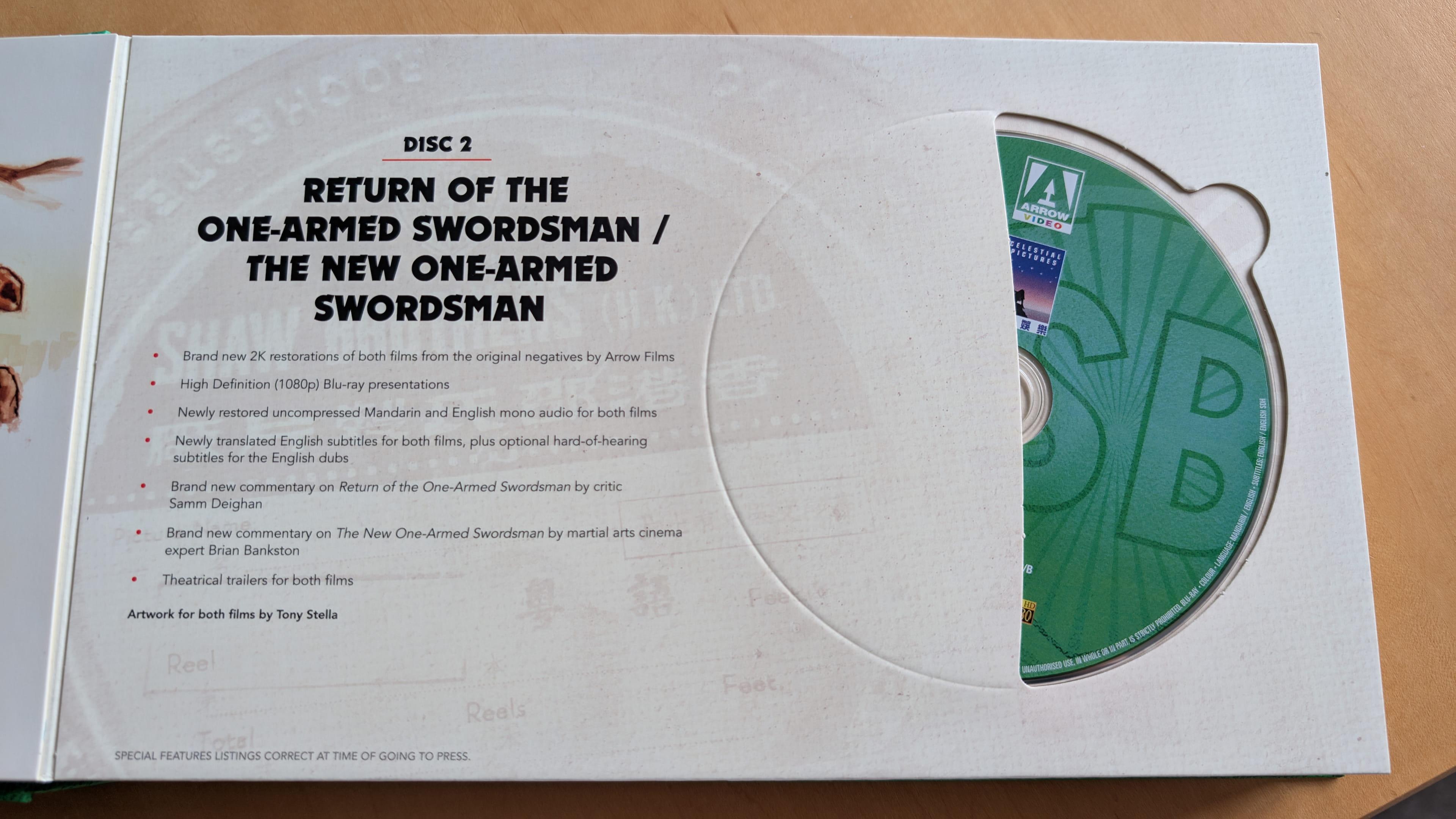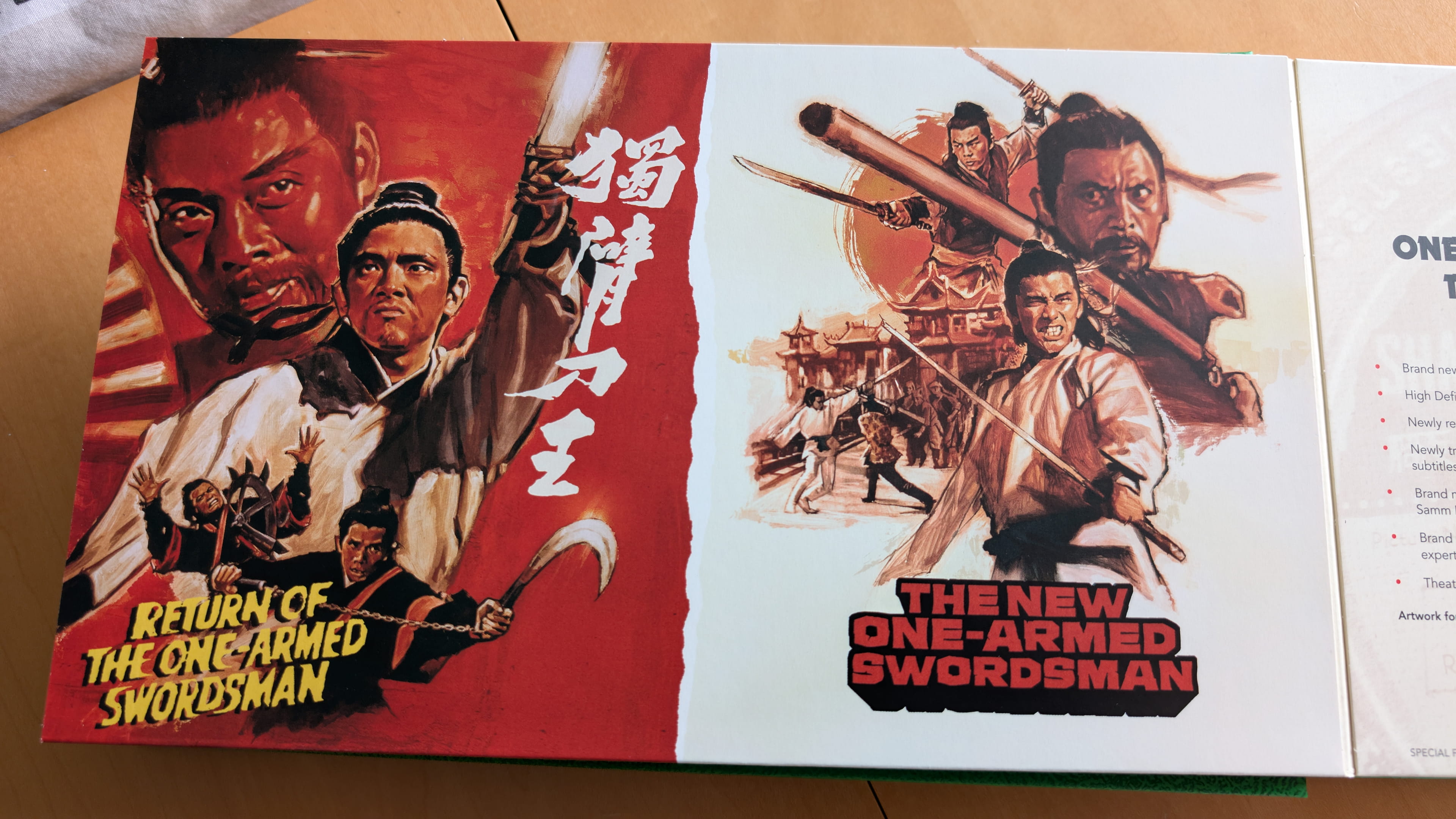 | 2 | Return of the One-Armed Swordsman Brand new 2K restoration from the original negatives by Arrow Films Newly restored uncompressed Mandarin and English mono audio Newly translated English subtitles Optional English Hard-of-Hearing subtitles for the English dub The New One-Armed Swordsman Brand new 2K restoration from the original negatives by Arrow Films Newly restored uncompressed Mandarin and English mono audio Newly translated English subtitles Optional English Hard-of-Hearing subtitles for the English dub |