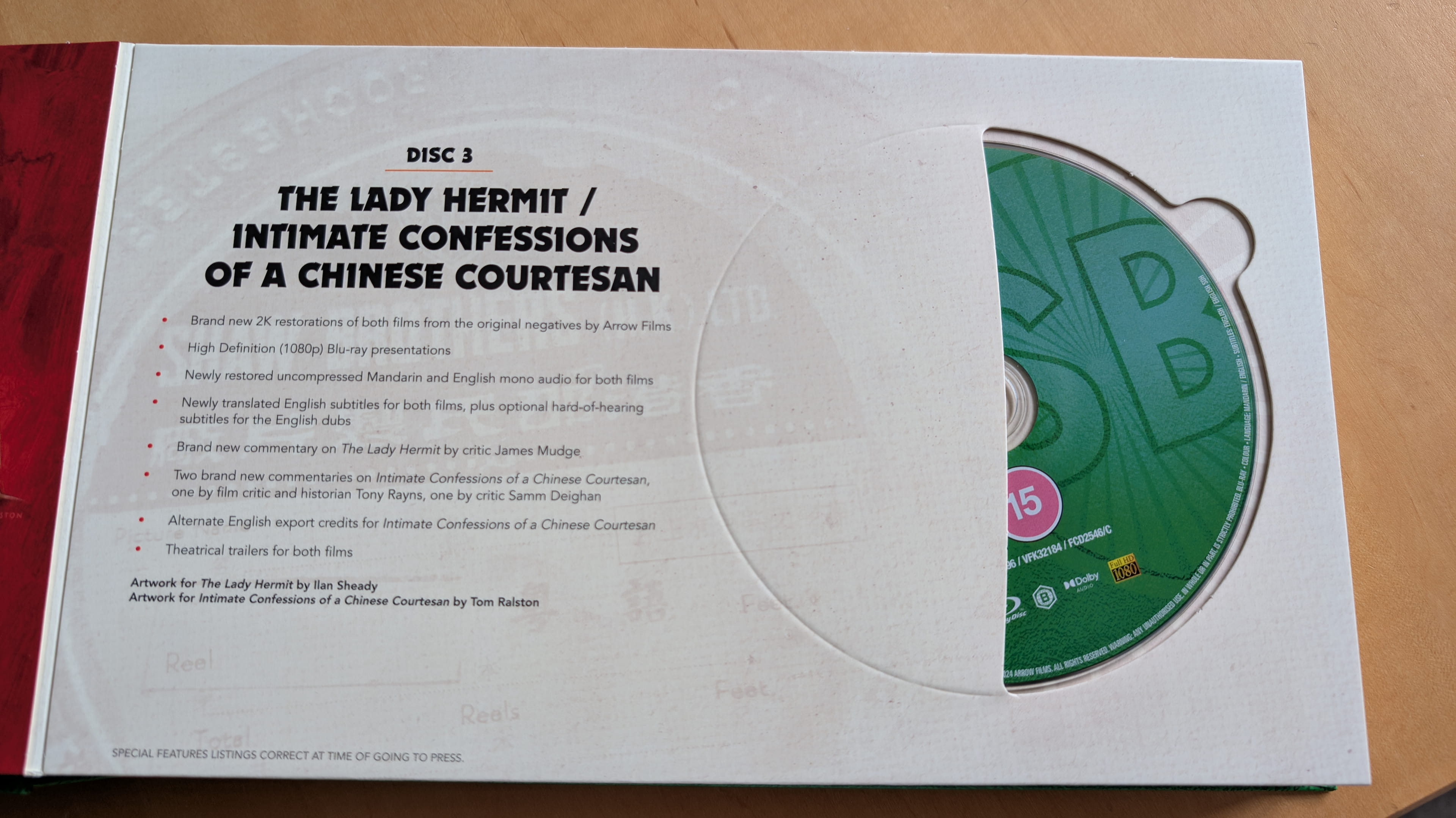 | 3 | The Lady Hermit Brand new 2K restoration from the original negatives by Arrow Films Newly restored uncompressed Mandarin and English mono audio Newly translated English subtitles Optional English Hard-of-Hearing subtitles for the English dub Intimate Confessions of a Chinese Courtesan Brand new 2K restoration from the original negatives by Arrow Films Newly restored uncompressed Mandarin and English mono audio Newly translated English subtitles Optional English Hard-of-Hearing subtitles for the English dub |