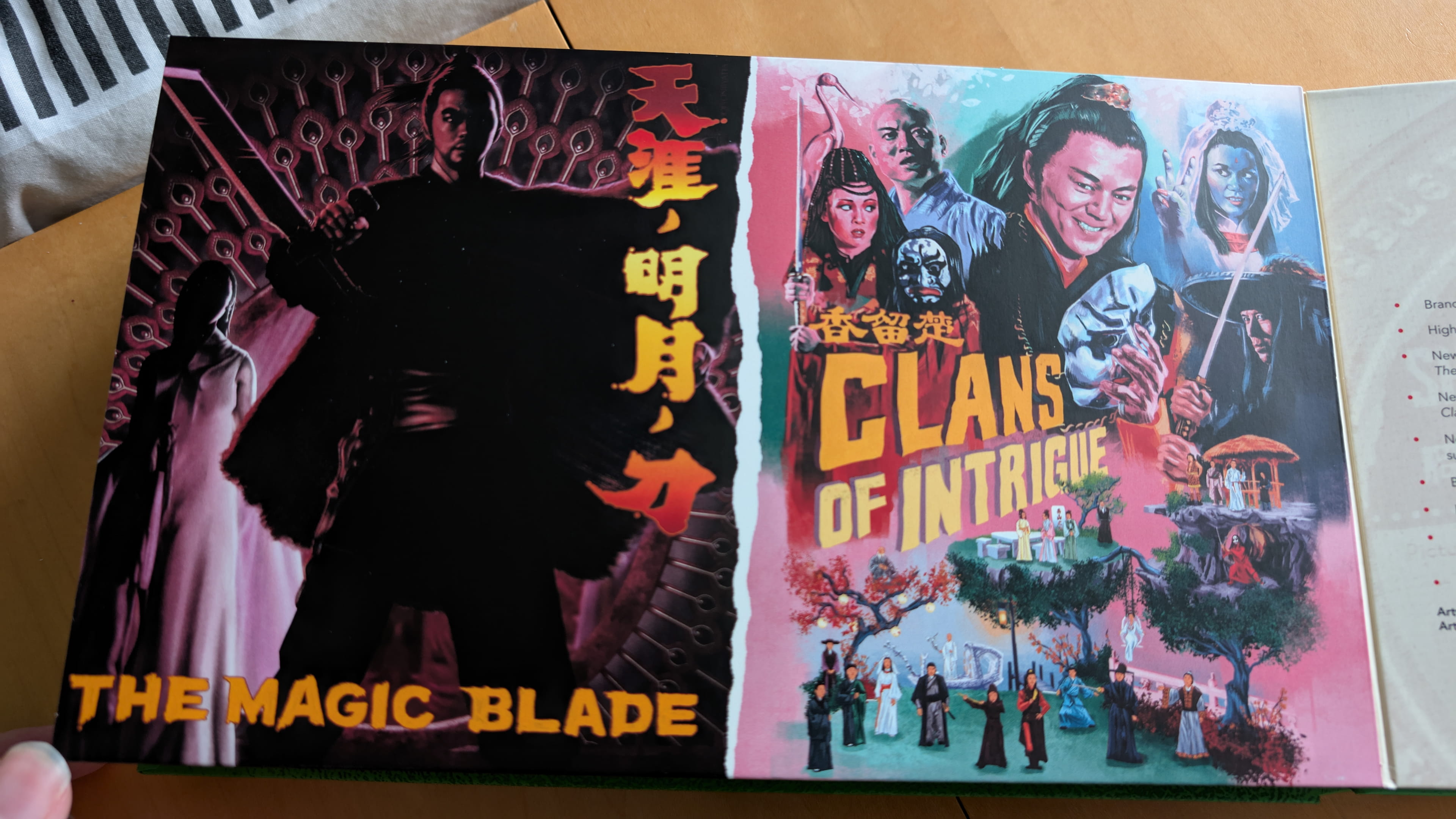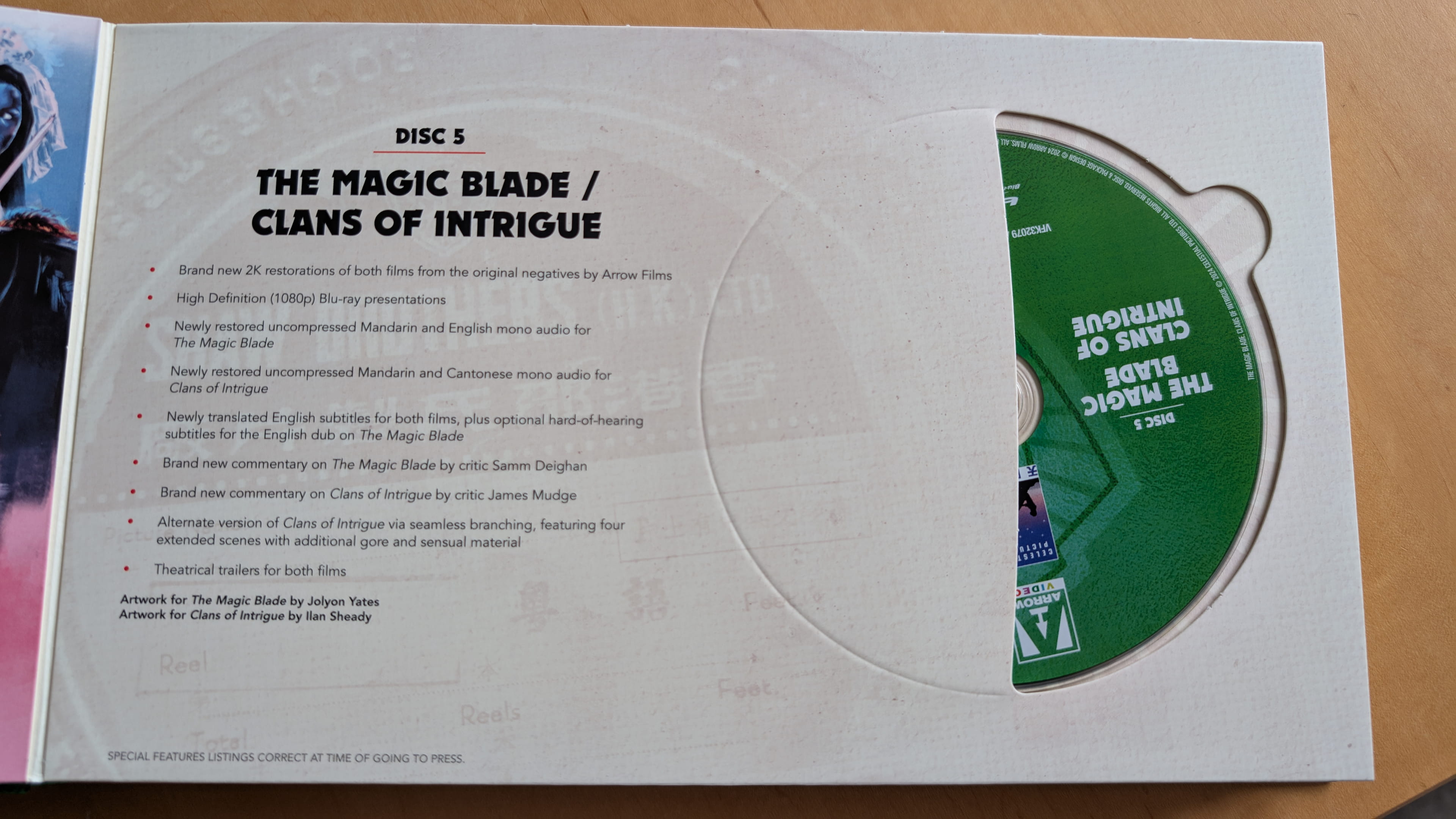 | 5 | The Magic Blade Brand new 2K restoration from the original negatives by Arrow Films Newly restored uncompressed Mandarin and English mono audio Newly translated English subtitles Optional English Hard-of-Hearing subtitles for the English dub Clans of Intrigue Brand new 2K restoration from the original negatives by Arrow Films Newly restored uncompressed Mandarin and Cantonese mono audio Newly translated English subtitles |