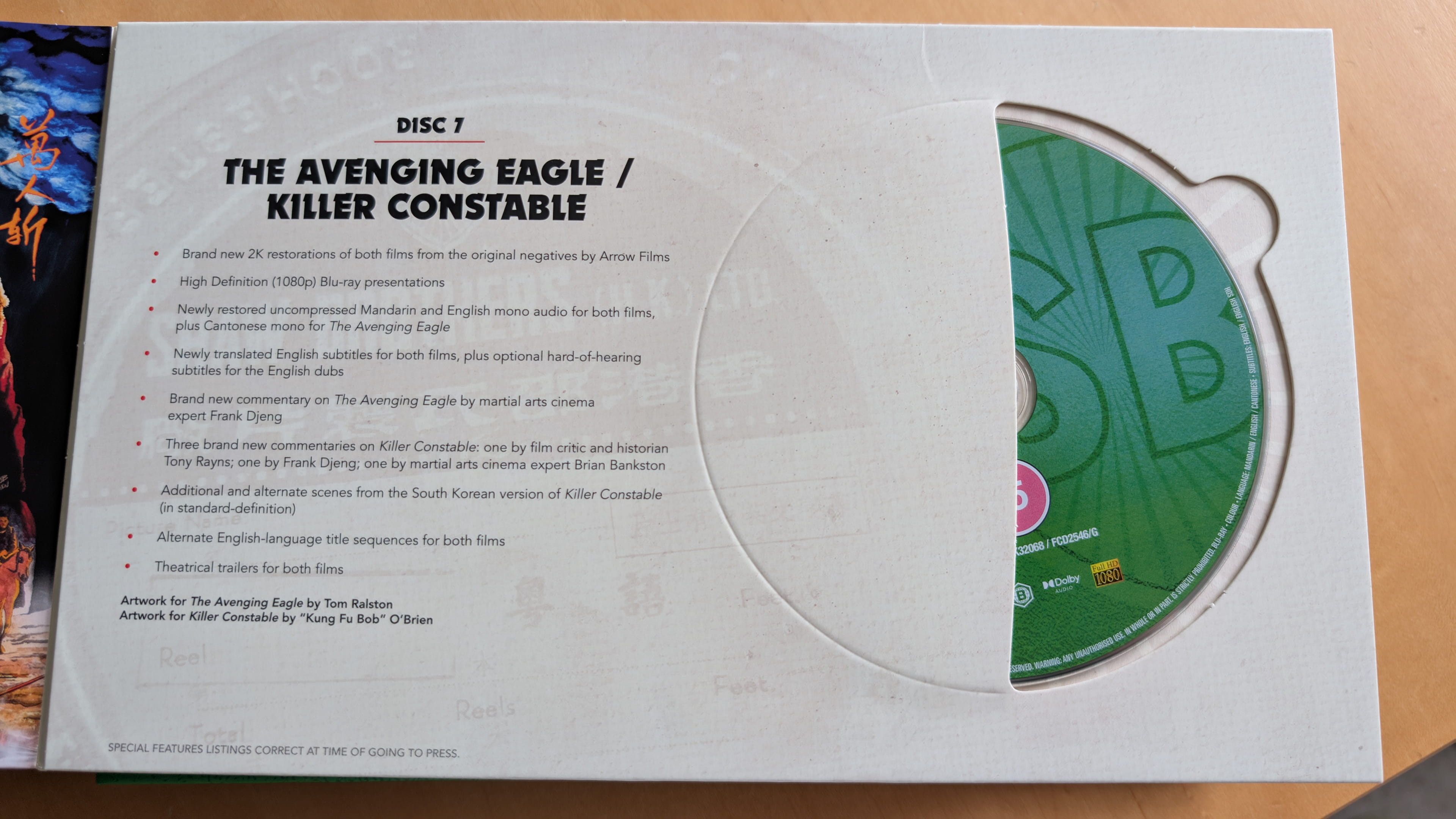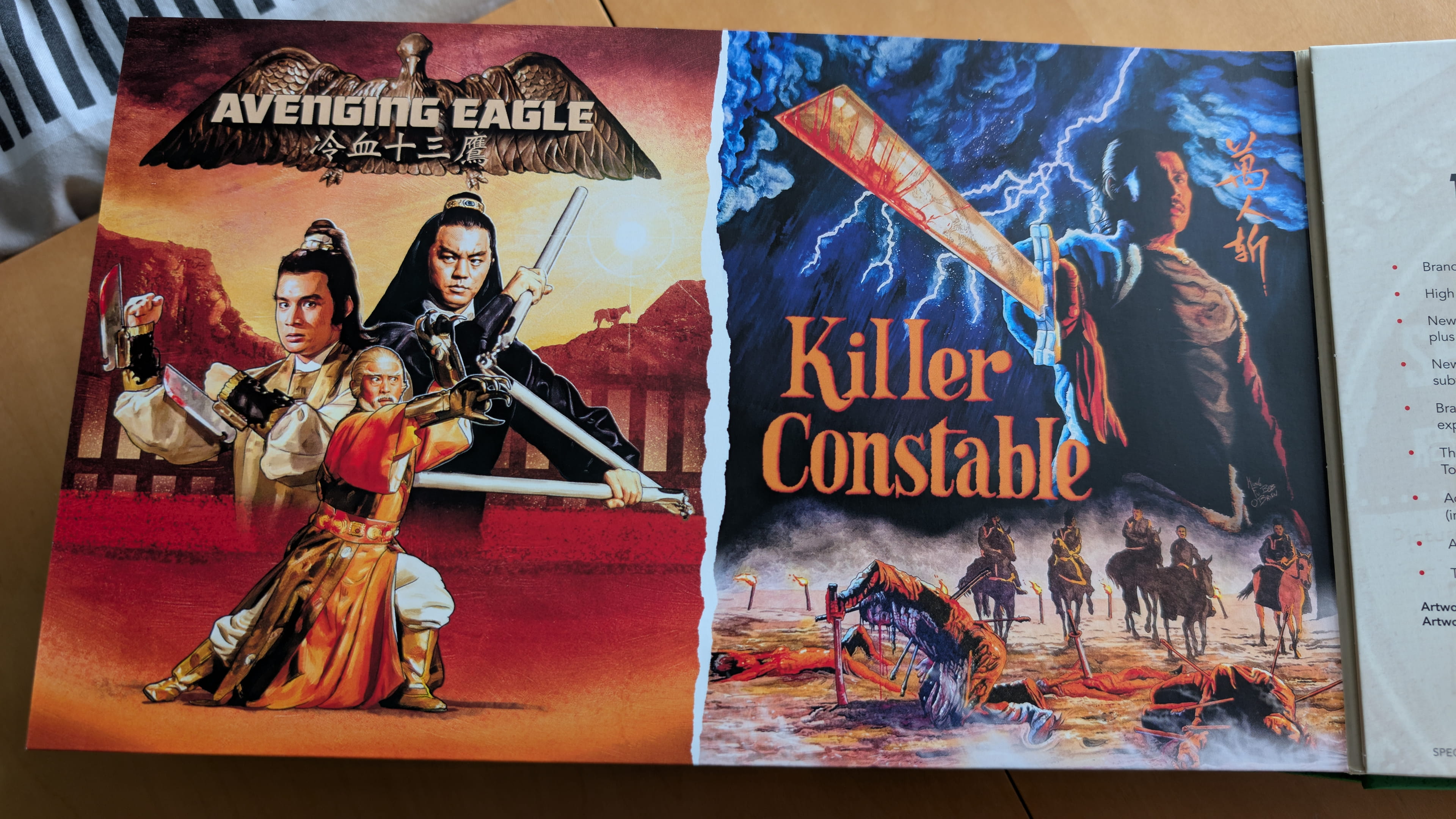 | 7 | The Avenging Eagle Brand new 2K restoration from the original negatives by Arrow Films Newly restored uncompressed Mandarin, Cantonese and English mono audio Newly translated English subtitles Optional English Hard-of-Hearing subtitles for the English dub Killer Constable Brand new 2K restoration from the original negatives by Arrow Films Newly restored uncompressed Mandarin and English mono audio Newly translated English subtitles Optional English Hard-of-Hearing subtitles for the English dub |