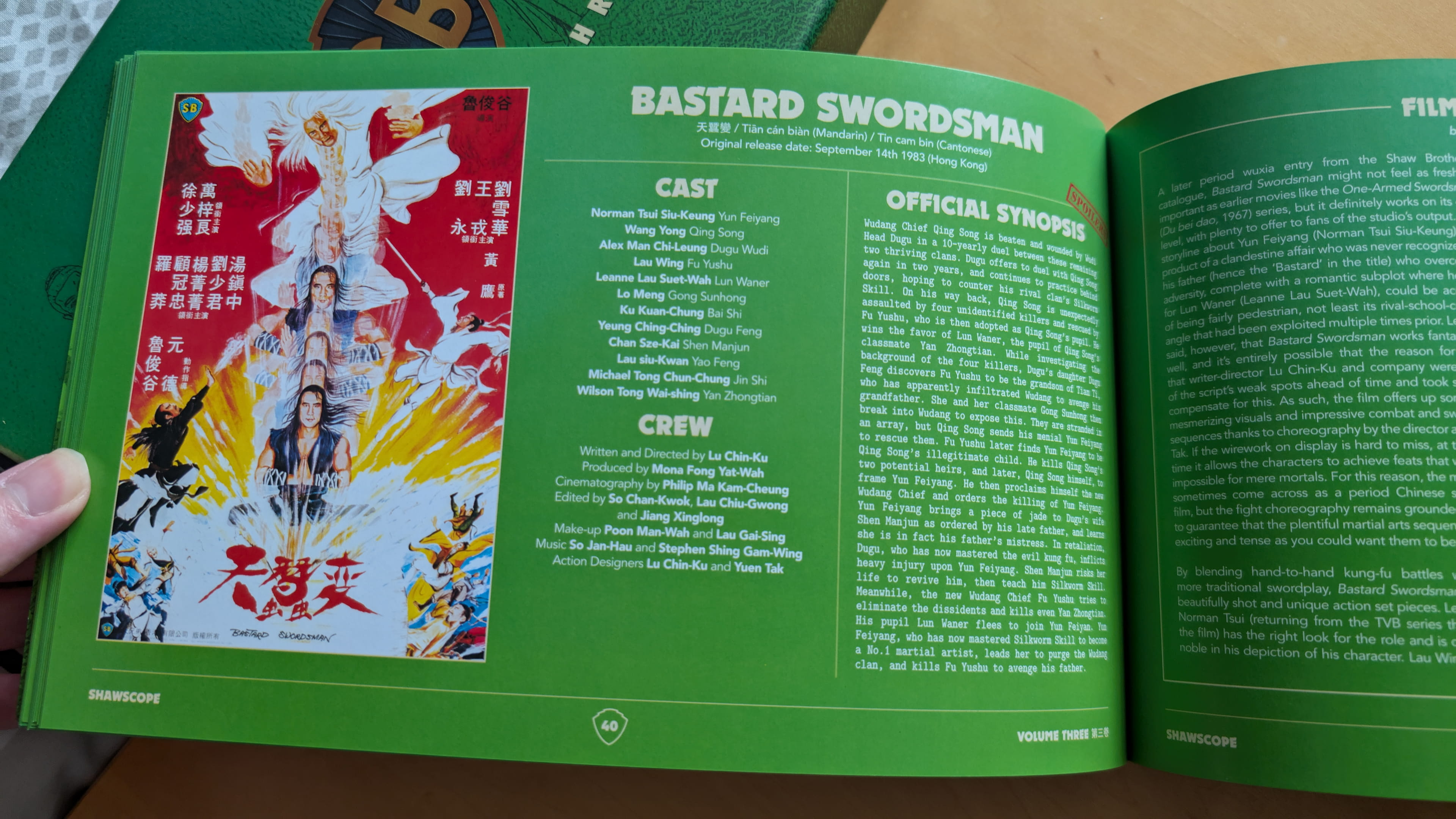 The Shawscope Volume 3 box set is presented in a rigid large box housing a digibook that contains the Blu-ray discs with illustrated artwork and the contents on each page, and an illustrated 60-page book featuring essays written by David West, Jonathan Clements and Dylan Cheung, as well as cast and crew listings and notes for each film by Ian Jane. There’s also artwork illustrated by Chris Malbon, “Kung Fu Bob” O’Brien, Tom Ralston, Ilan Sheady, Tony Stella and Jolyon Yates.