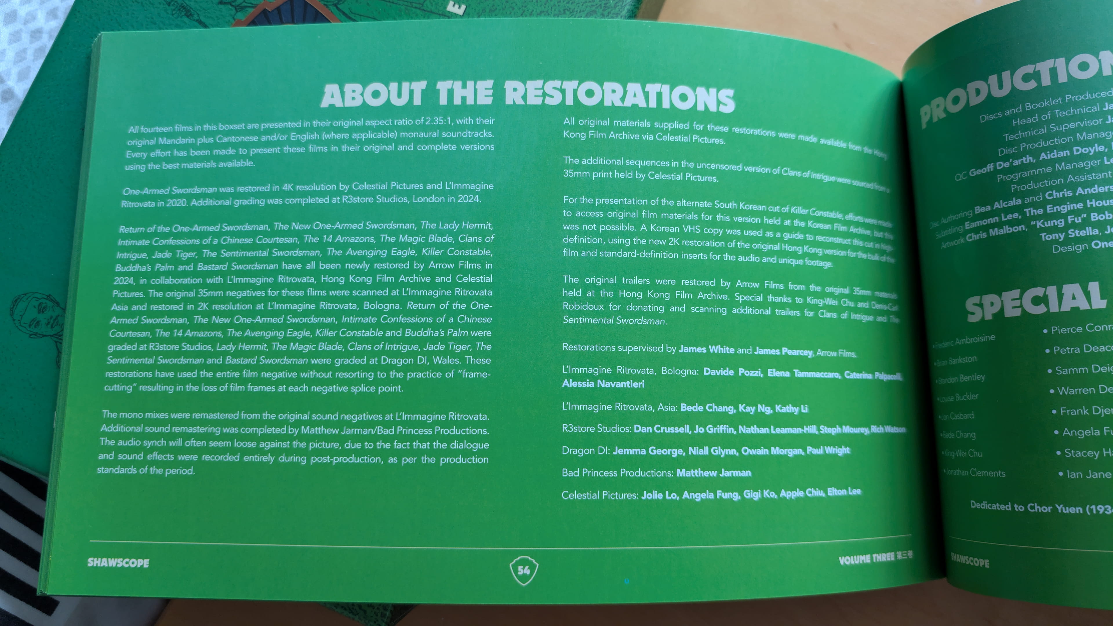 The limited edition release for Shawscope Volume 3 contains 14 films across 8 Blu-ray discs plus an additional Blu-ray disc for an alternate version of one of the films included as well as additional bonus features. Each disc has different restorations/transfers, audio and bonus feature content.