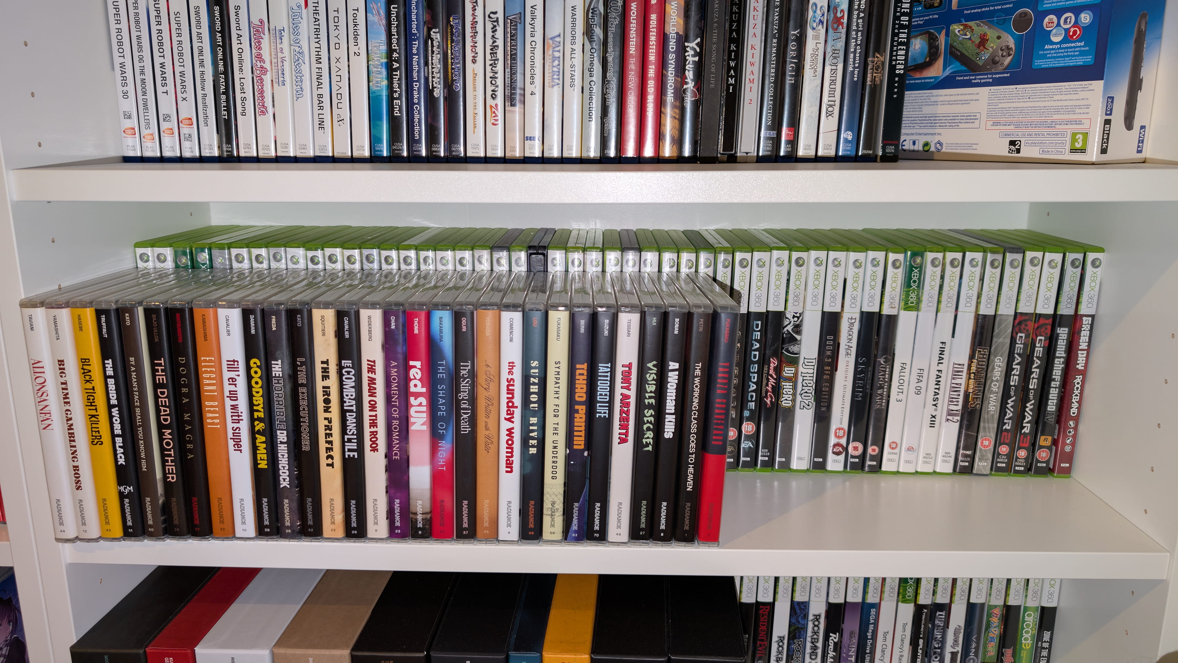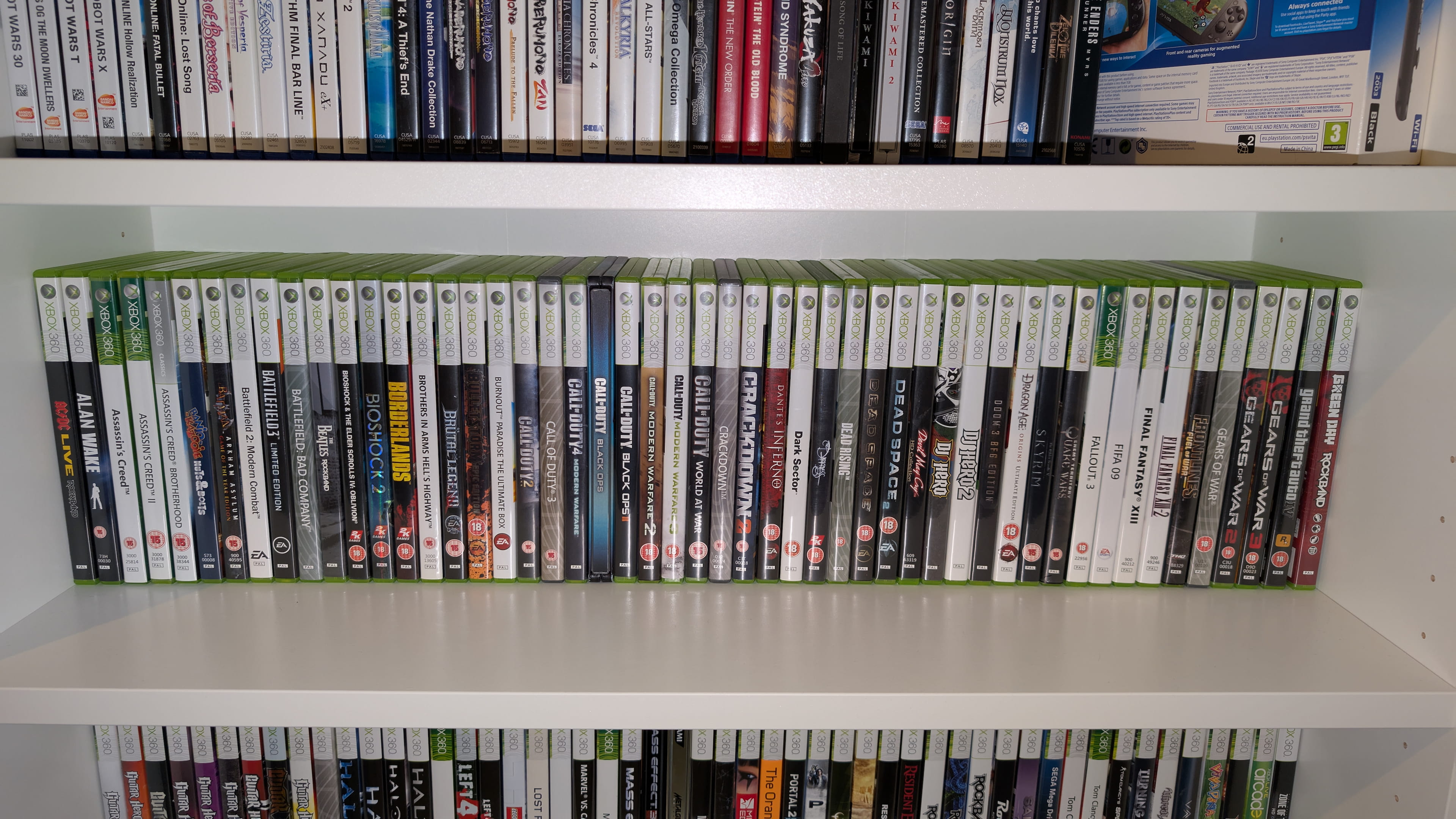 On the seventh and eighth rows is my Xbox 360 collection. I have 101 physical games located here for the platform. Although there’s been no updates to this collection, I may add some more here and there with the prices of these physical games slowly going up due to the Xbox 360 Store closing and Microsoft moving further away from physical media for their Xbox brand.