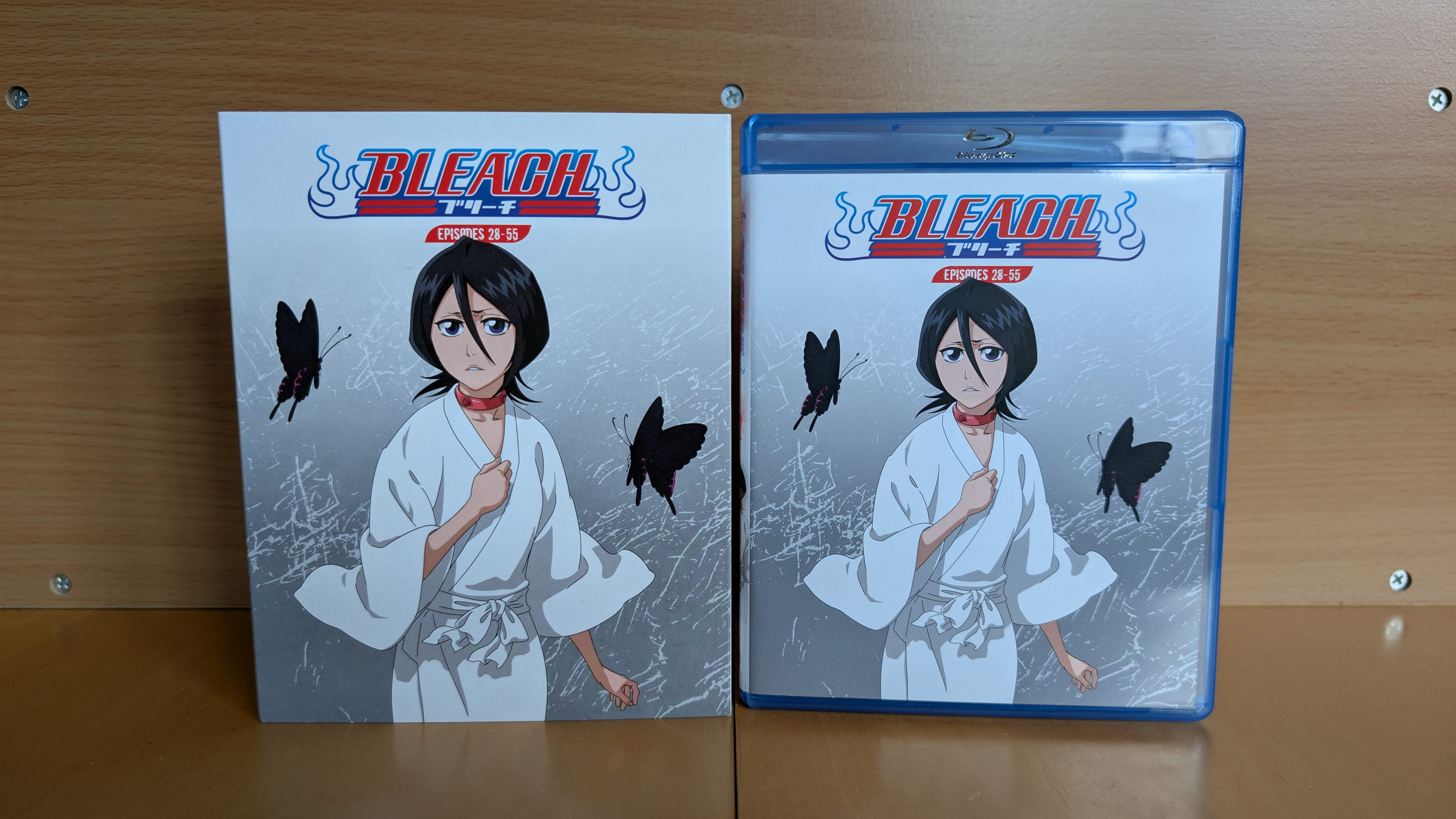 BLEACH Part 2 arrived after a week’s delay because of Royal Mail and their occupied deliveries from the holiday rush. This collection covers episodes 28-55 of the long-running shonen anime series. This is treated as a ‘limited standard edition’ as it comes with a slipcase and three small art cards.