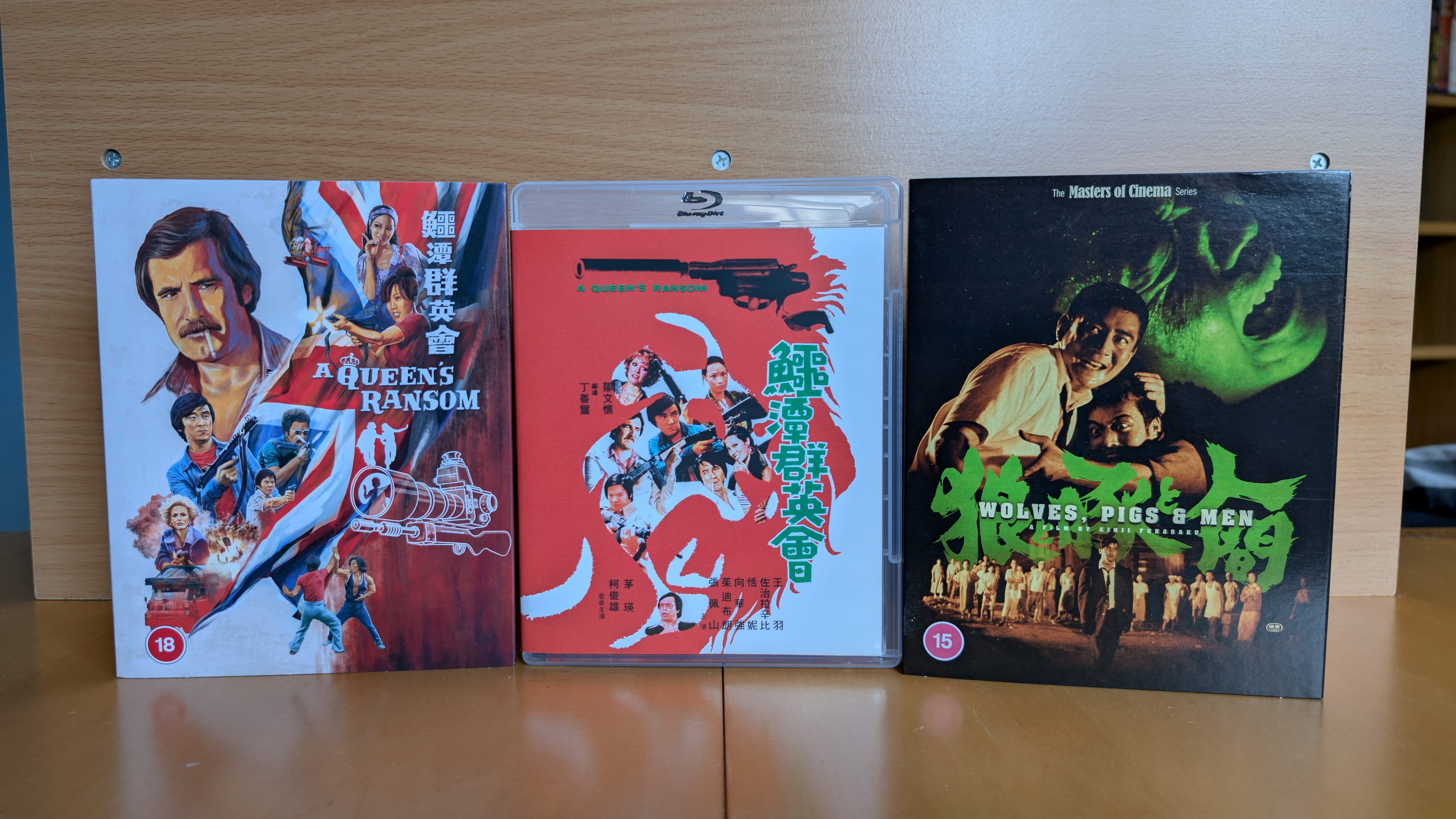 Anyway, the ones that I received are Brandy Yuen’s 1983 film The Champions (波牛) starring Yuen Biao, Lo Wei’s 1973 film A Man Called Tiger (冷面虎) starring Jimmy Wang Yu, Ting Shan-hsi’s 1976 film A Queen’s Ransom (鱷潭群英會) also starring Jimmy Wang Yu which is also known as International Assassin in some territories, & from the Masters of Cinema line-up I also picked up Kinji Fukasaku’s 1964 film Wolves, Pigs and Men (狼と豚と人間).